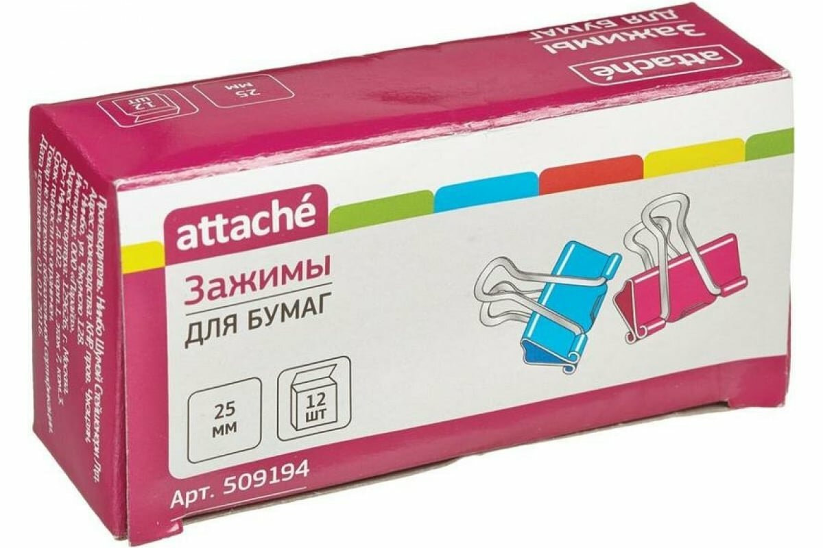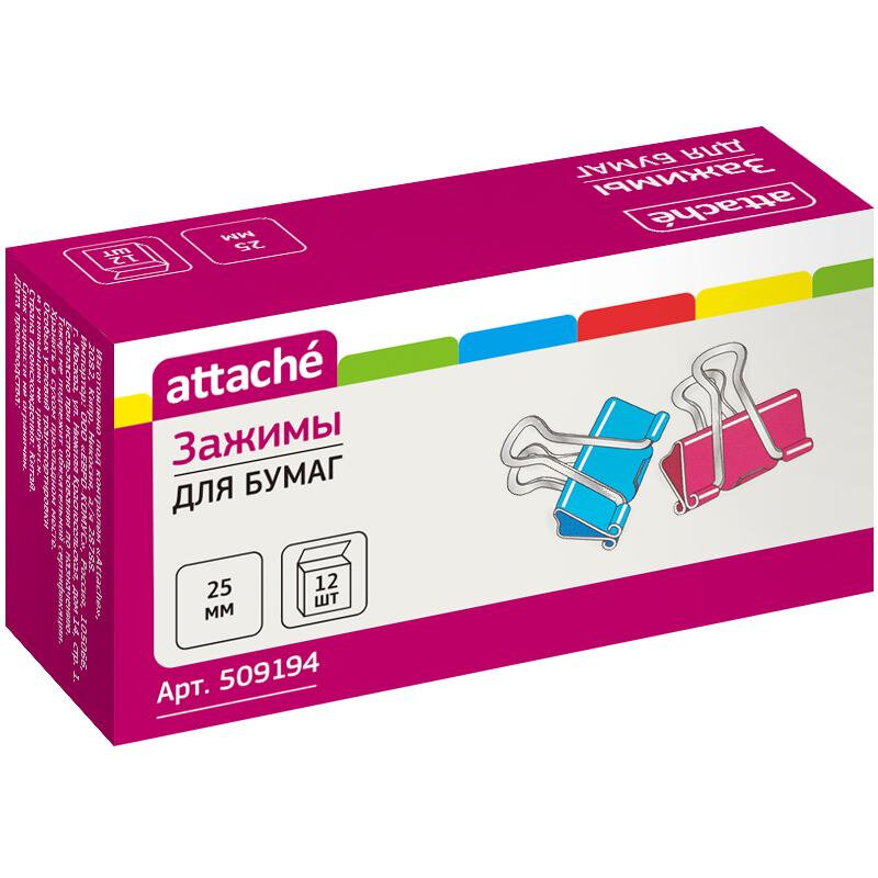 Зажимы для бумаг цветные 25мм 12шт/уп Attache, в картонной коробке интересное:
