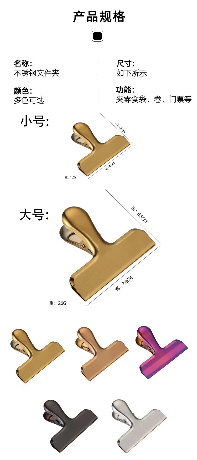 MOONBIFFY Металлические зажимы для переплета розовые, красные, золотые, S-golden