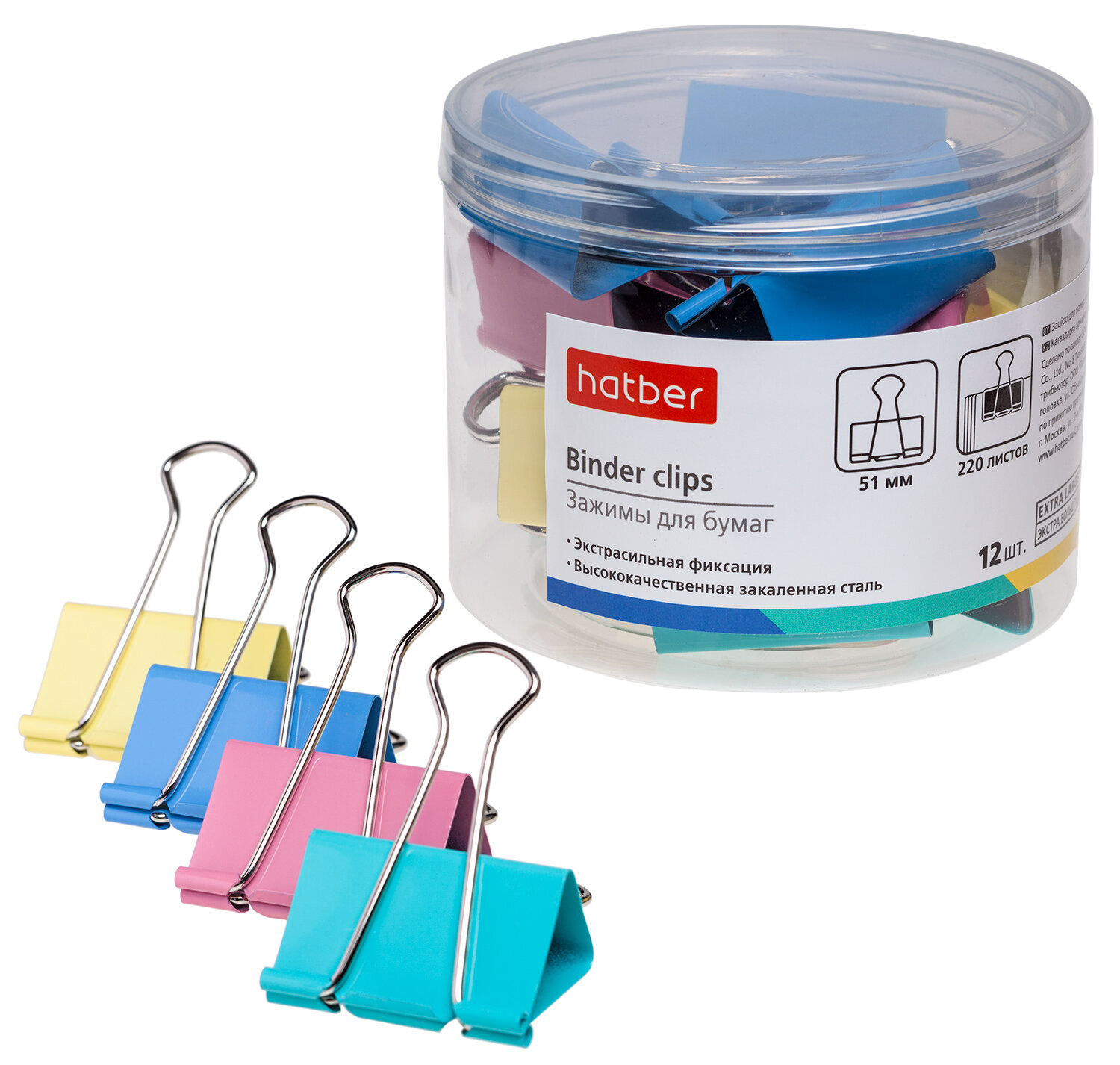 Зажимы для Бумаг 51 мм цветные 12 штук интересное: