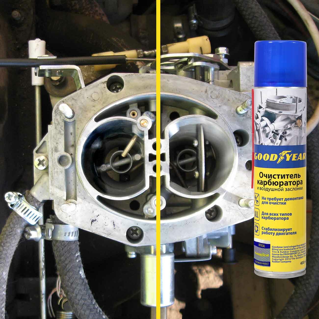 GOODYEAR GY000705 Очиститель карбюратора 400мл - эффективно и без демонтажа очищает элементы карбюратора и воздушной заслонки от всех видов углеродных отложений, аэрозоль 1шт