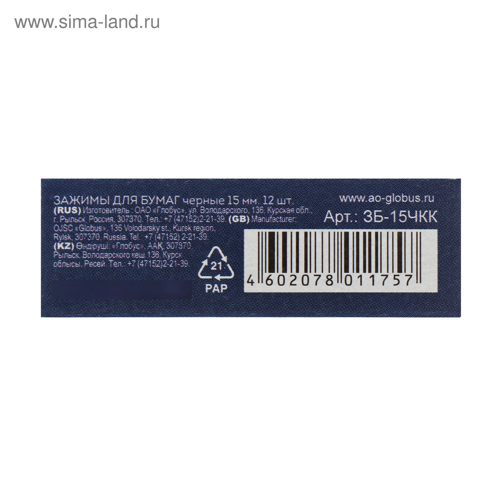 Зажимы для бумаг 12 шт, 15 мм, чёрные, цвет: чёрный, вид упаковки: коробка картонная интересное: