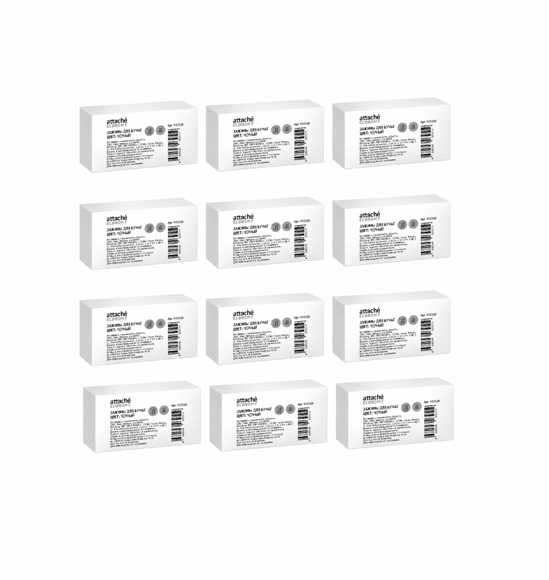 Attache Economy Зажимы для бумаг, 25 мм, цвет черный, 12 шт в упаковке, 12 уп интересное:
