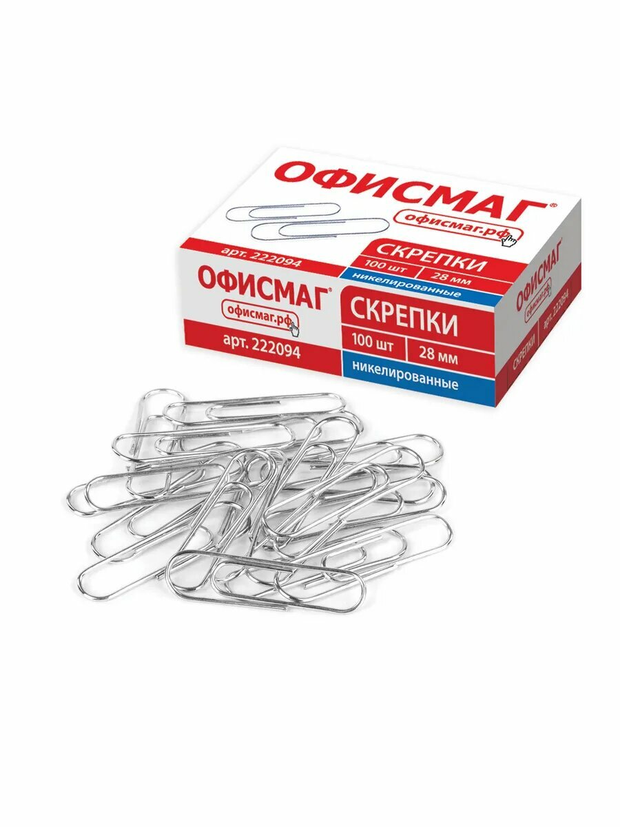 Купить 10шт Скрепки офисмаг, 28 мм, никелированные, 100 шт, в карт