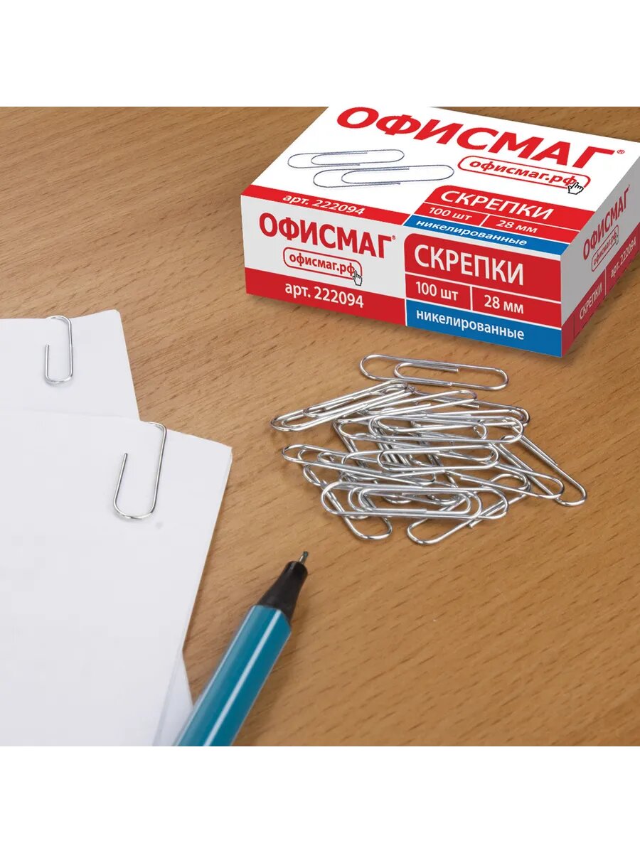 10шт Скрепки офисмаг, 28 мм, никелированные, 100 шт, в карт интересное: