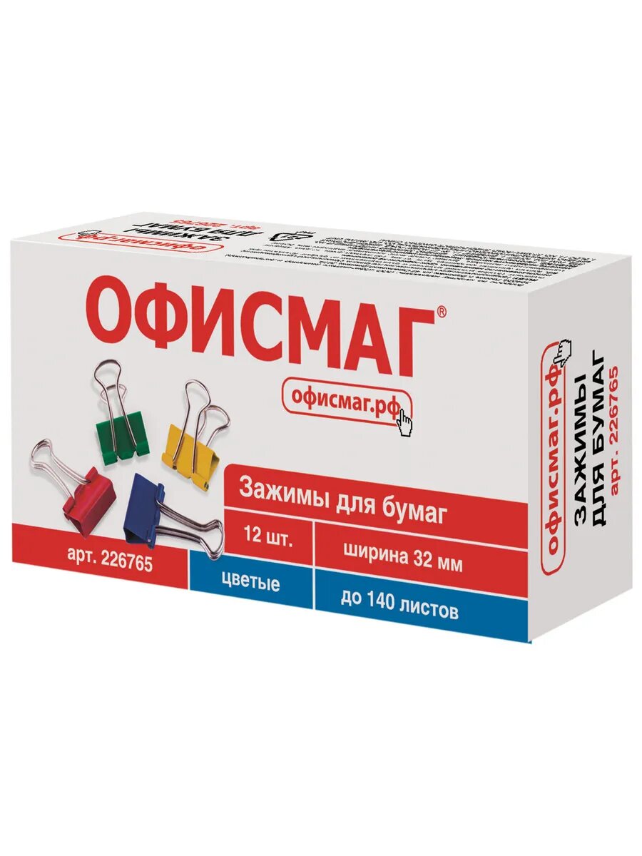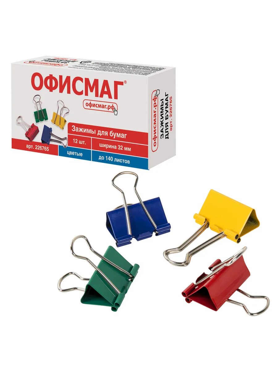 Купить 4шт Зажимы для бумаг офисмаг, комплект 12 шт, 32 мм, на 14