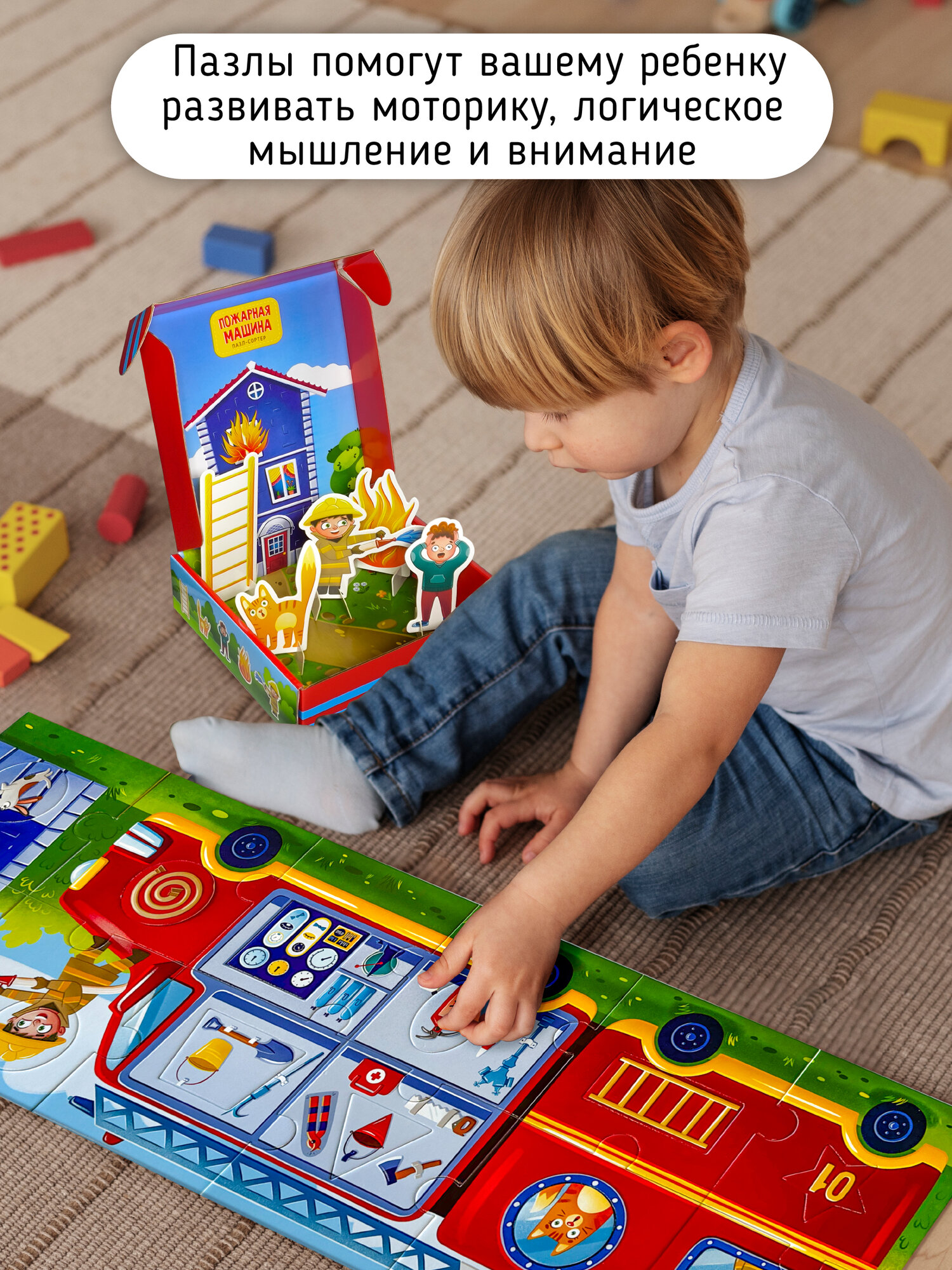 Купить Развивающие макси пазлы сортер для детей и малышей от 1 года "Пожарная машина", игровой набор I Счастье внутри