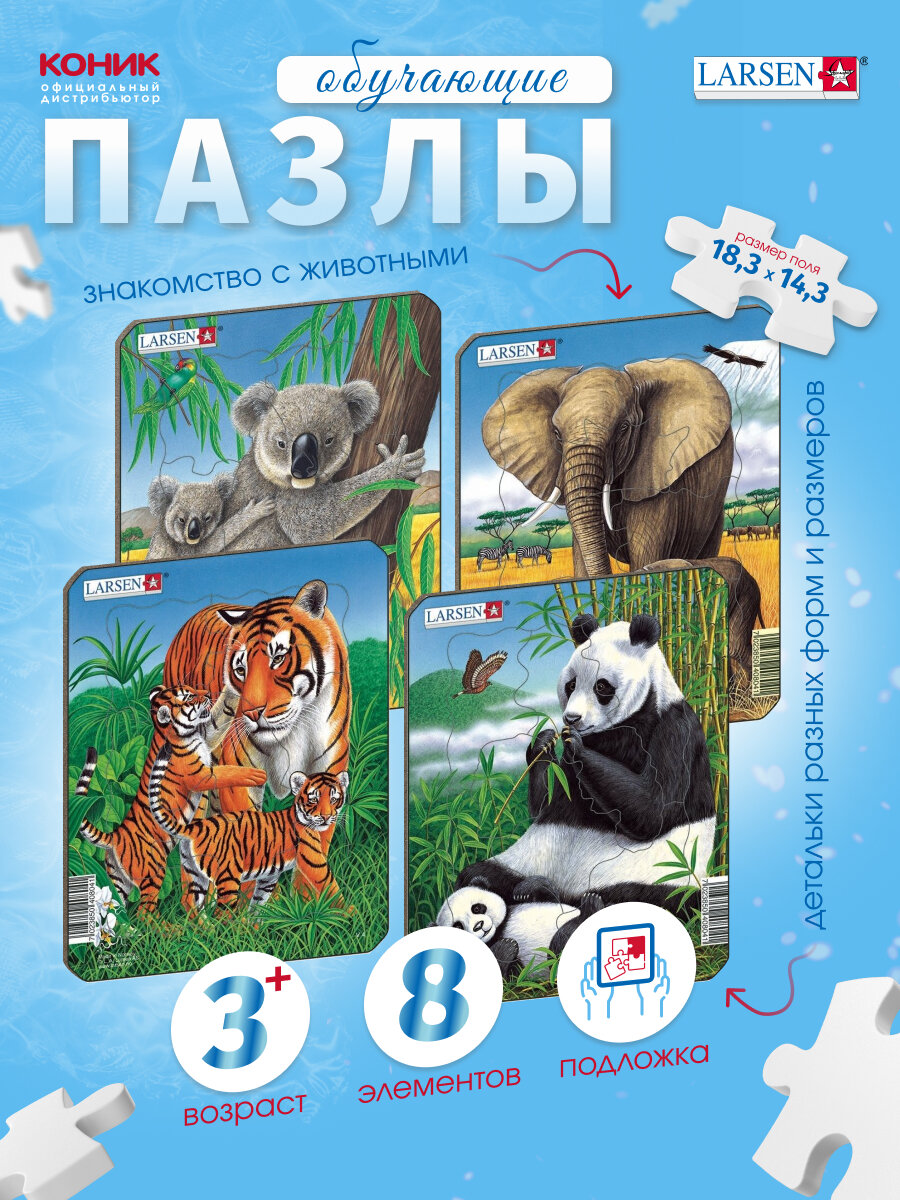 Купить Пазл Larsen "Коала, Слон, Тигр, Панда", картон, 18,3x14,3 cм, 8 элементов