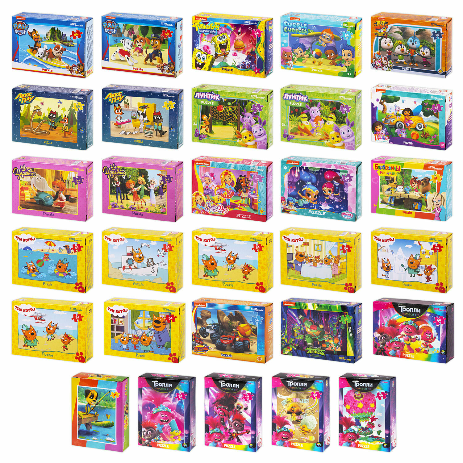Купить Пазлы для детей, малышей картонные 54 элемента детские, набор 30 штук, поле 17,5 х 13 см, Лицензионные сюжеты, 665875