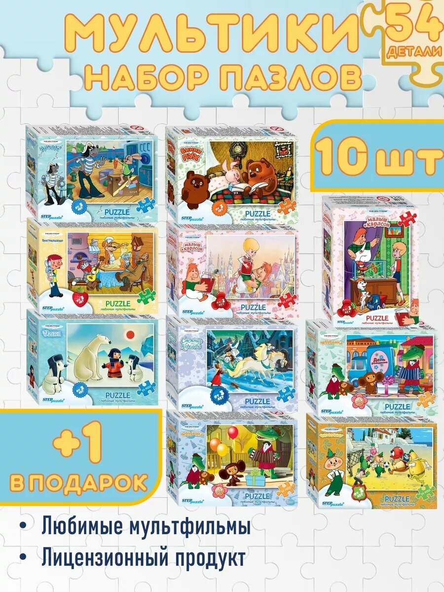 Купить 10+1 в подарок набор пазлов для детей "Любимые мультфильмы"