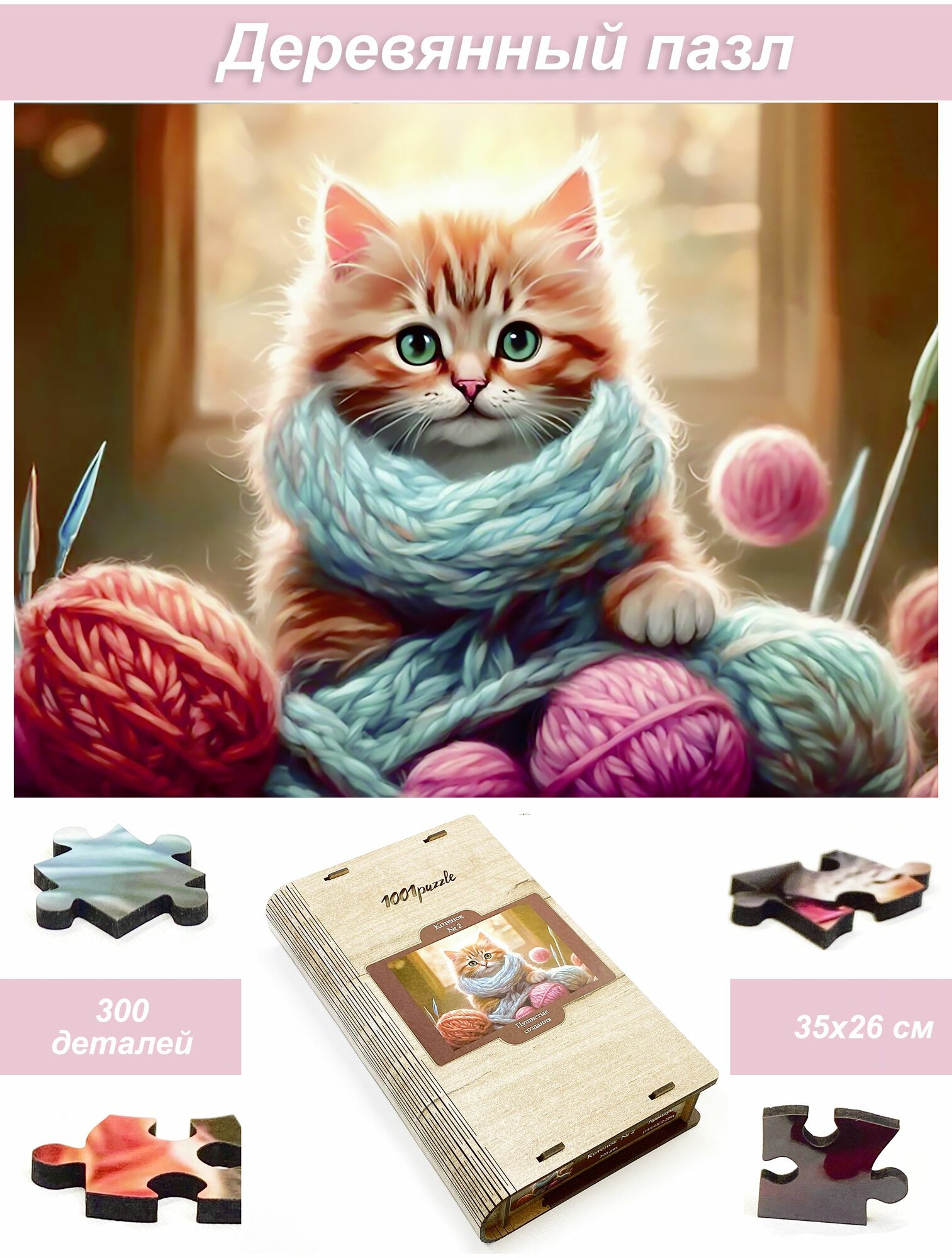 Пазл деревянный для детей и взрослых Алма 300 деталей: Котенок