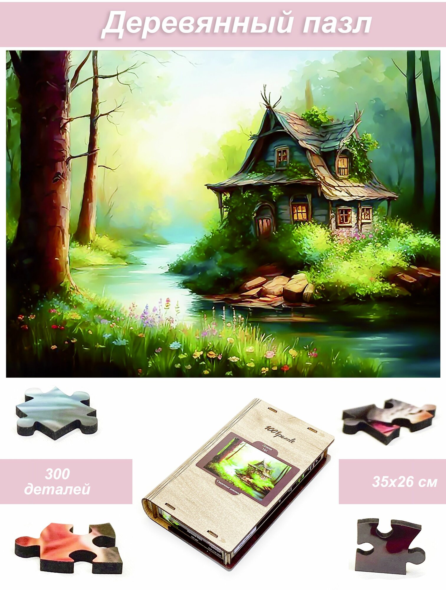 Пазл деревянный для детей и взрослых Алма 300 деталей: Сказочный домик