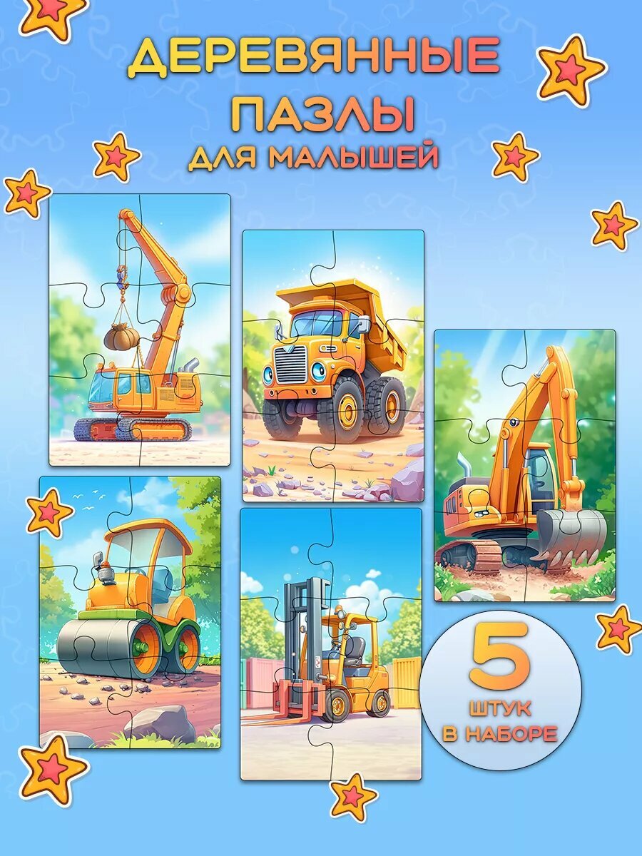 Деревянные пазлы для малышей от 1 года Стройтехника интересное:
