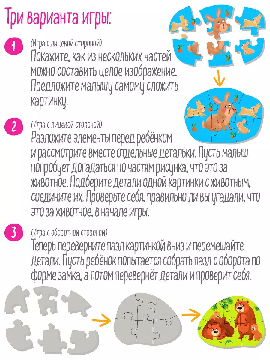 IQ пазлы крупные для малышей Домашние животные Развивашки 2+