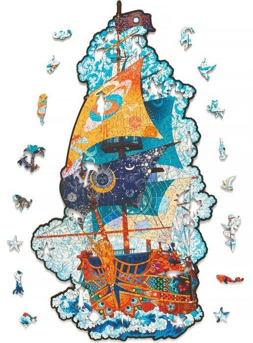 Деревянные пазлы для взрослых и для детей Rugo "Корабль" 31х55 см, 334 уникальных детали интересное: