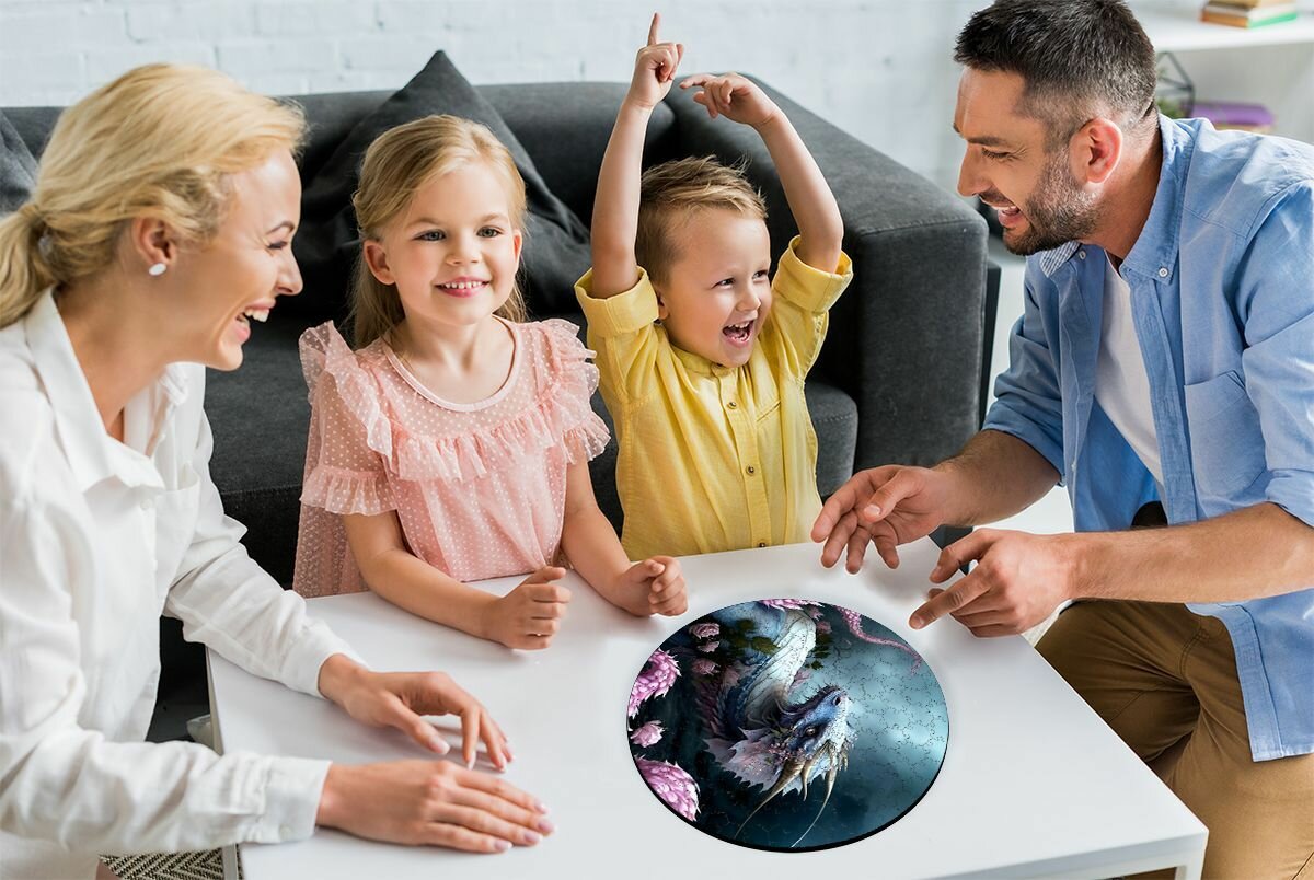 Деревянный пазл - картина Веселый Дракон 169 деталей 30х30см с системой приклейки / Подарок на Новый 2025 год