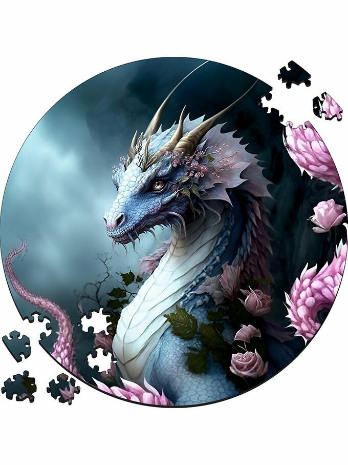 Деревянный пазл картина на стену Розовый Дракон 169 деталей 30х30см с системой приклейки