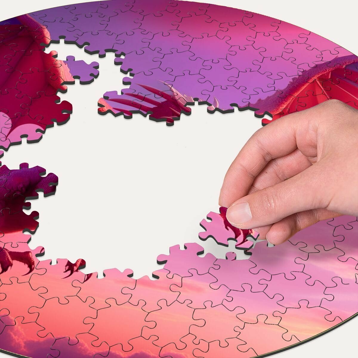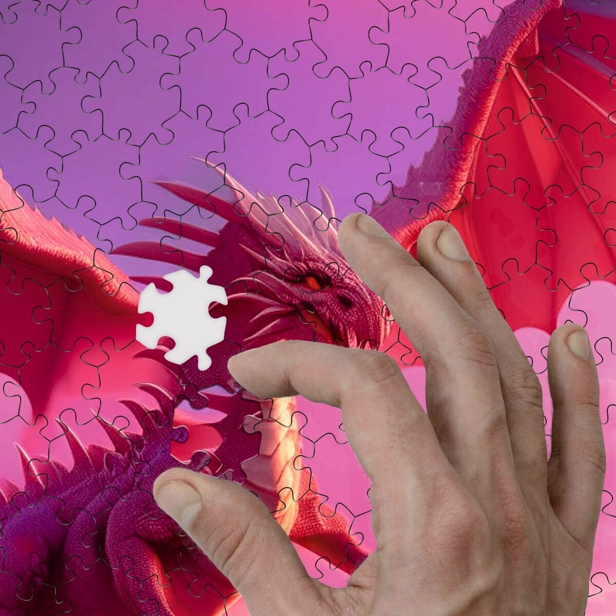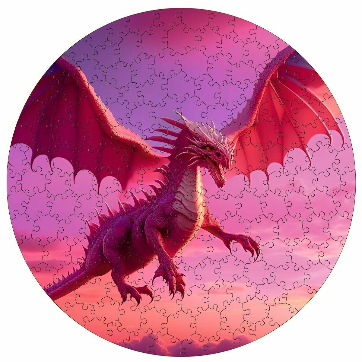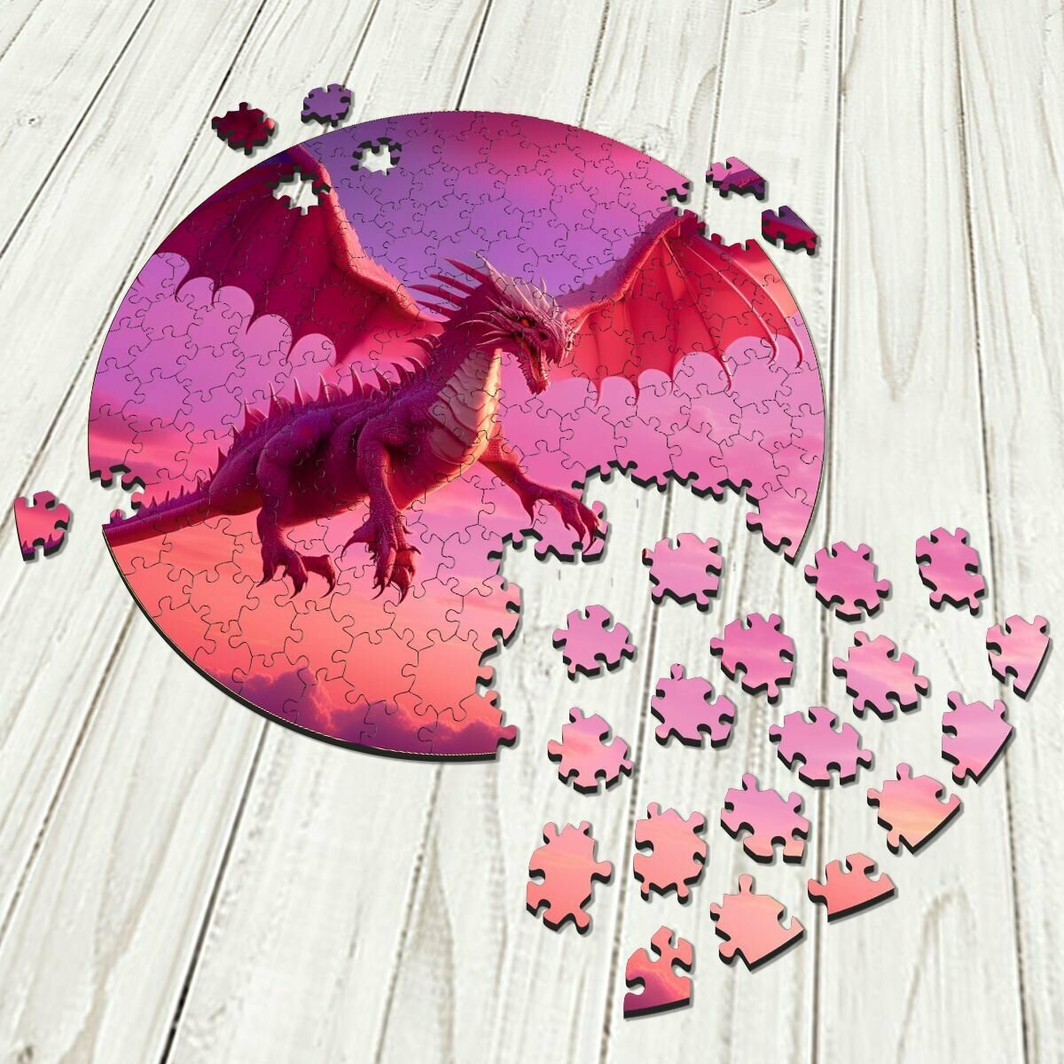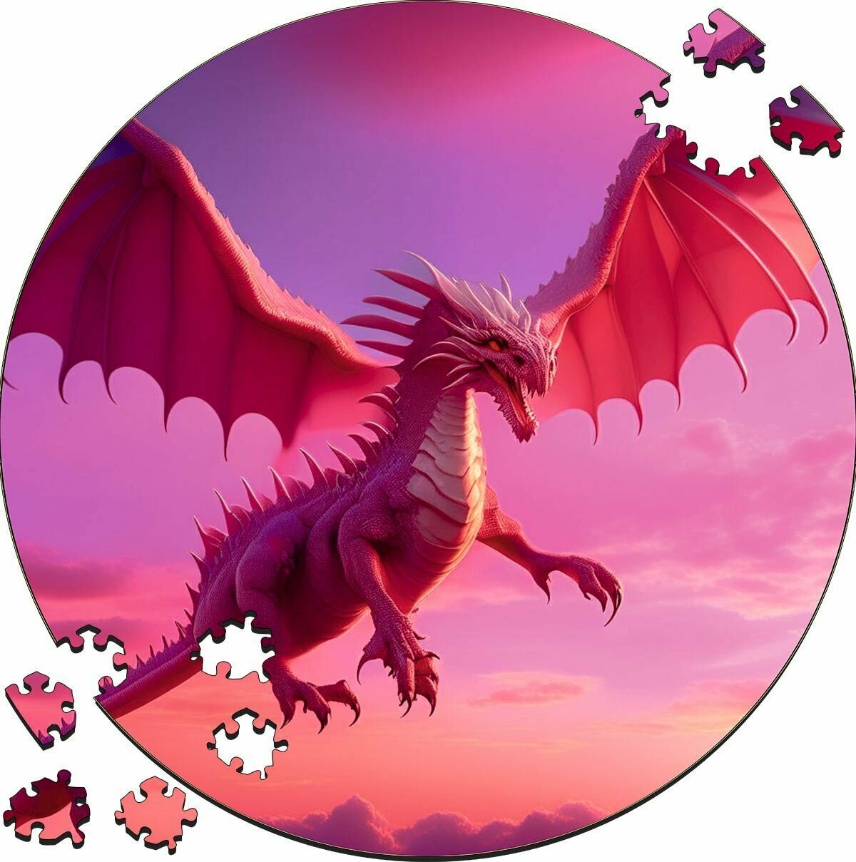 Купить Деревянный пазл картина на стену Розовый Дракон 169 деталей 30х30см с системой приклейки