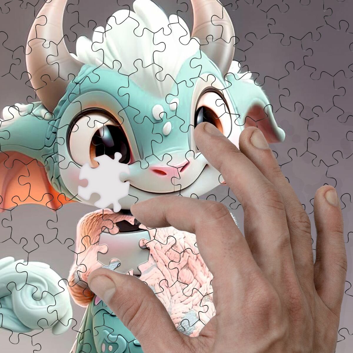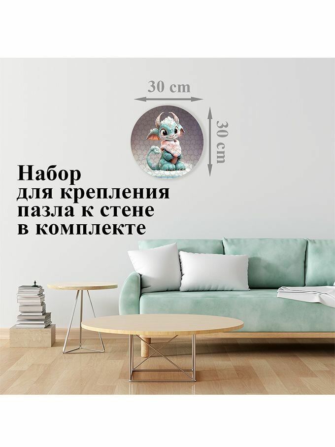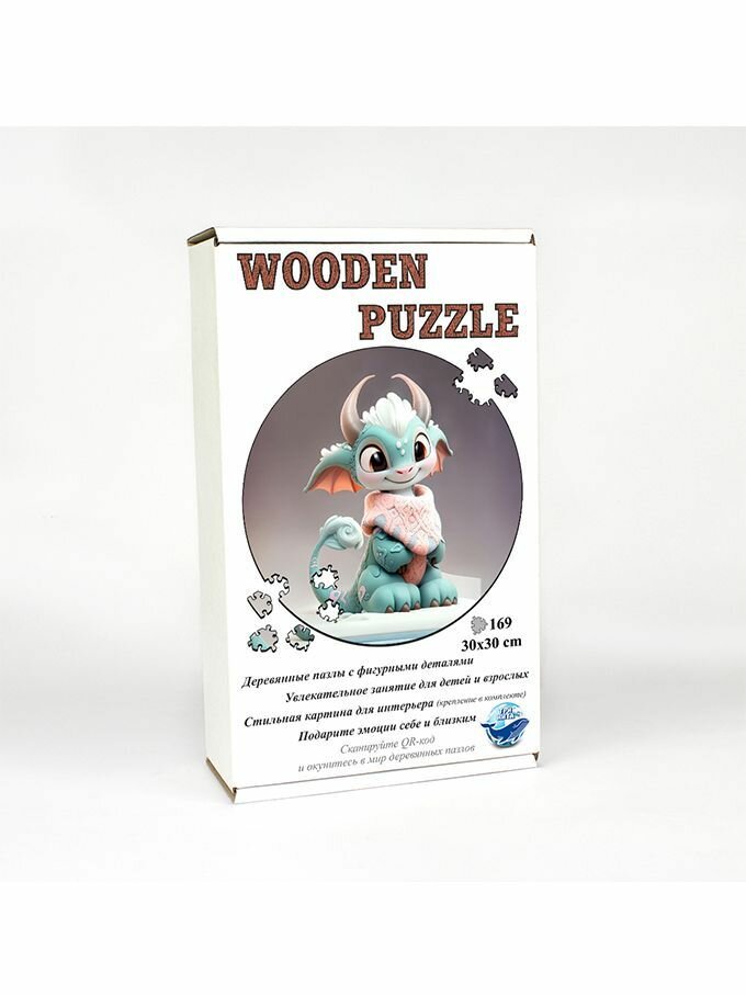 Купить Деревянный пазл картина на стену Зимний дракончик 169 деталей 30х30см с системой приклейки