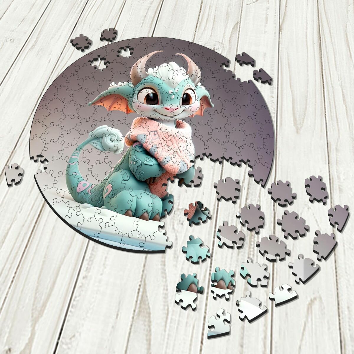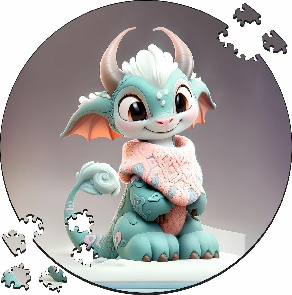 Деревянный пазл - картина Веселый Дракон 169 деталей 30х30см с системой приклейки / Подарок на Новый 2025 год