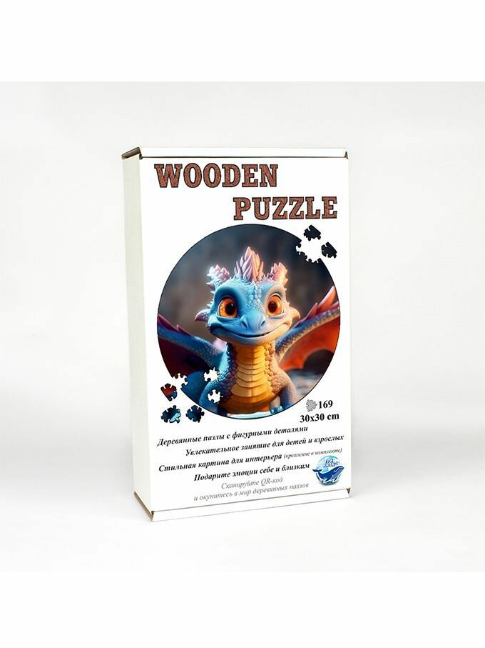 СохранитьДеревянный пазл - картина Веселый Дракон 169 деталей 30х30см с системой приклейки / Подарок на Новый 2025 год интересное: