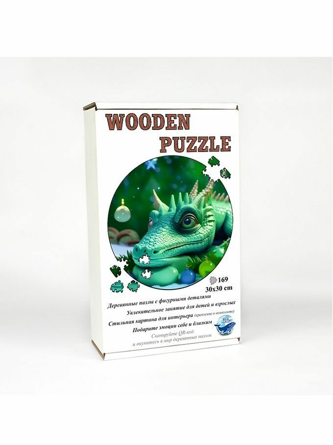Деревянный пазл - картина Веселый Дракон 169 деталей 30х30см с системой приклейки / Подарок на Новый 2025 год