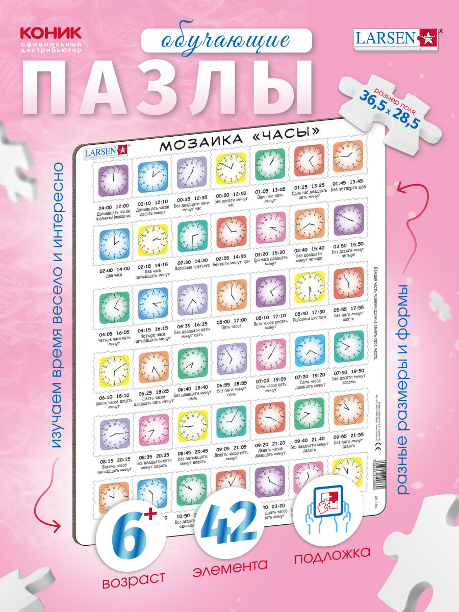Купить Детские обучающие Пазлы Larsen "Часы", 42 детали, OB7