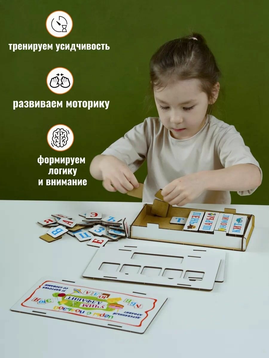 Купить Развивающая настольная игра Учим буквы и слова / Учимся читать/ деревянный алфавит
