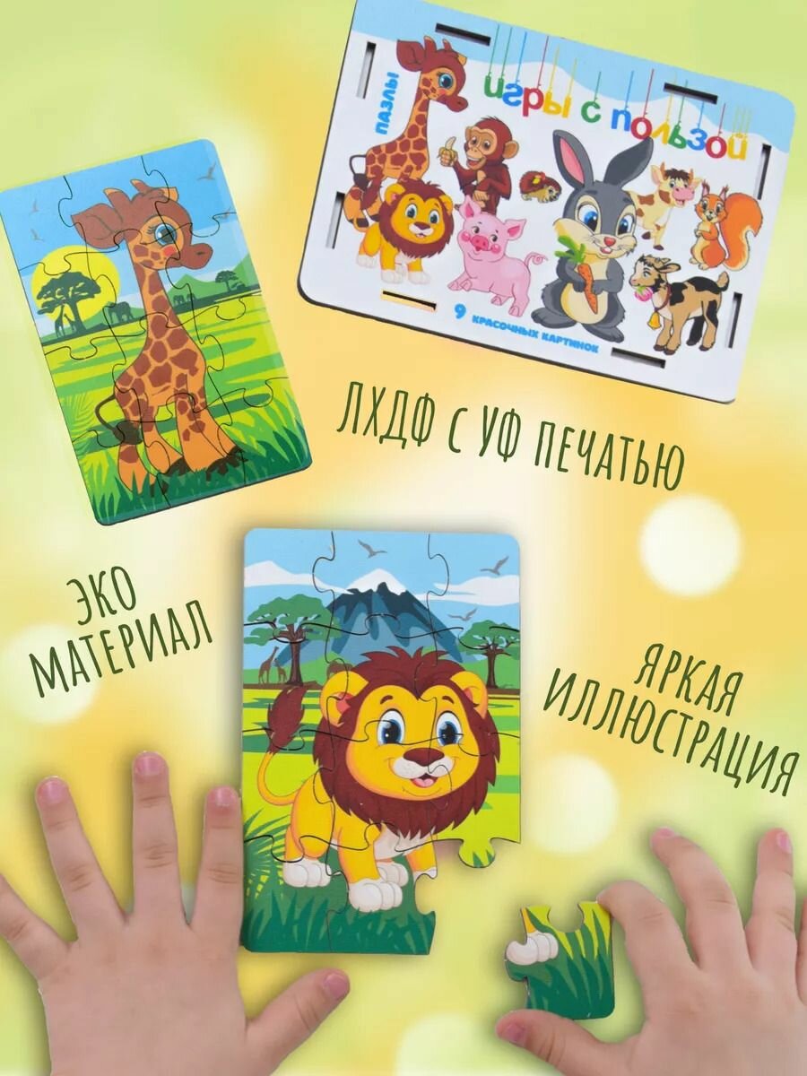 Набор деревянныз развивающих пазлов для детей от 1 года 9 шт интересное: