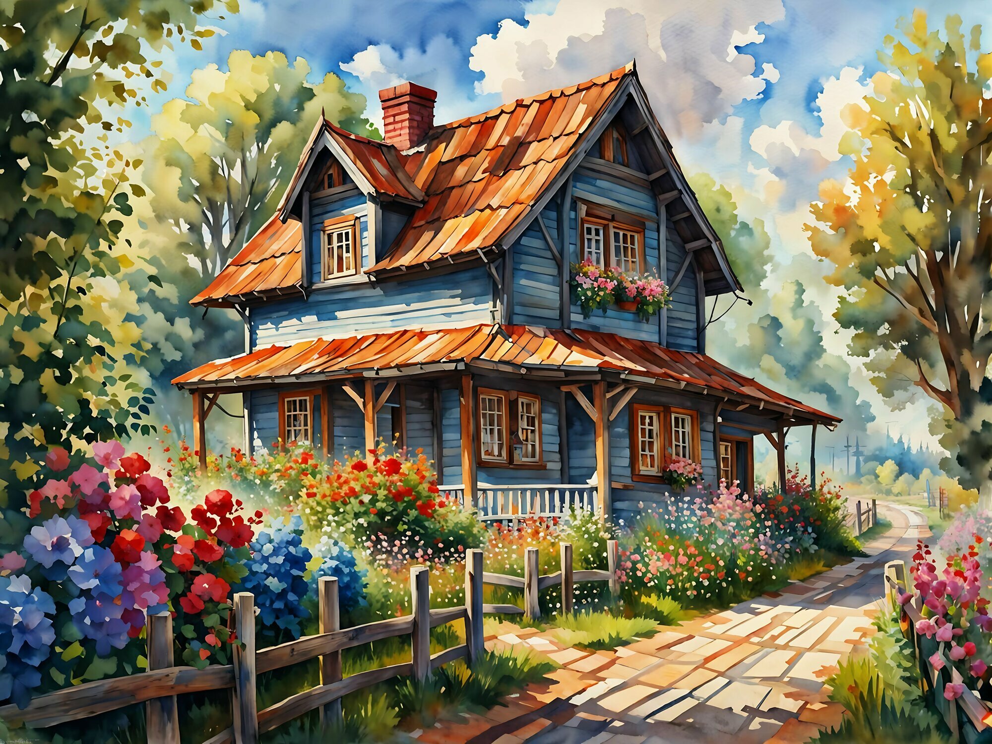 Пазл деревянный для взрослых Алма 500 деталей: Домик в деревне. Цветущий дом