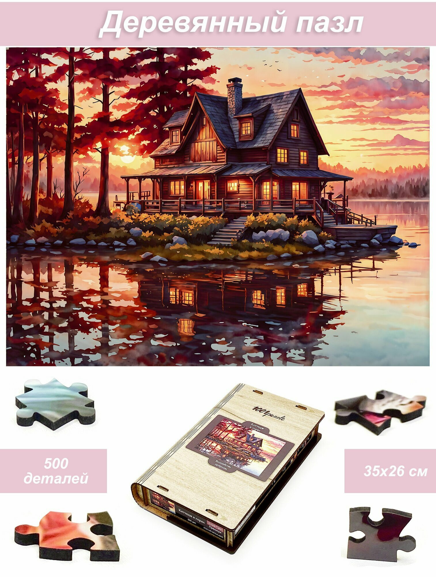 Купить Пазл деревянный для взрослых Алма 500 деталей: Волшебство природы. Карелия. Закат у озера