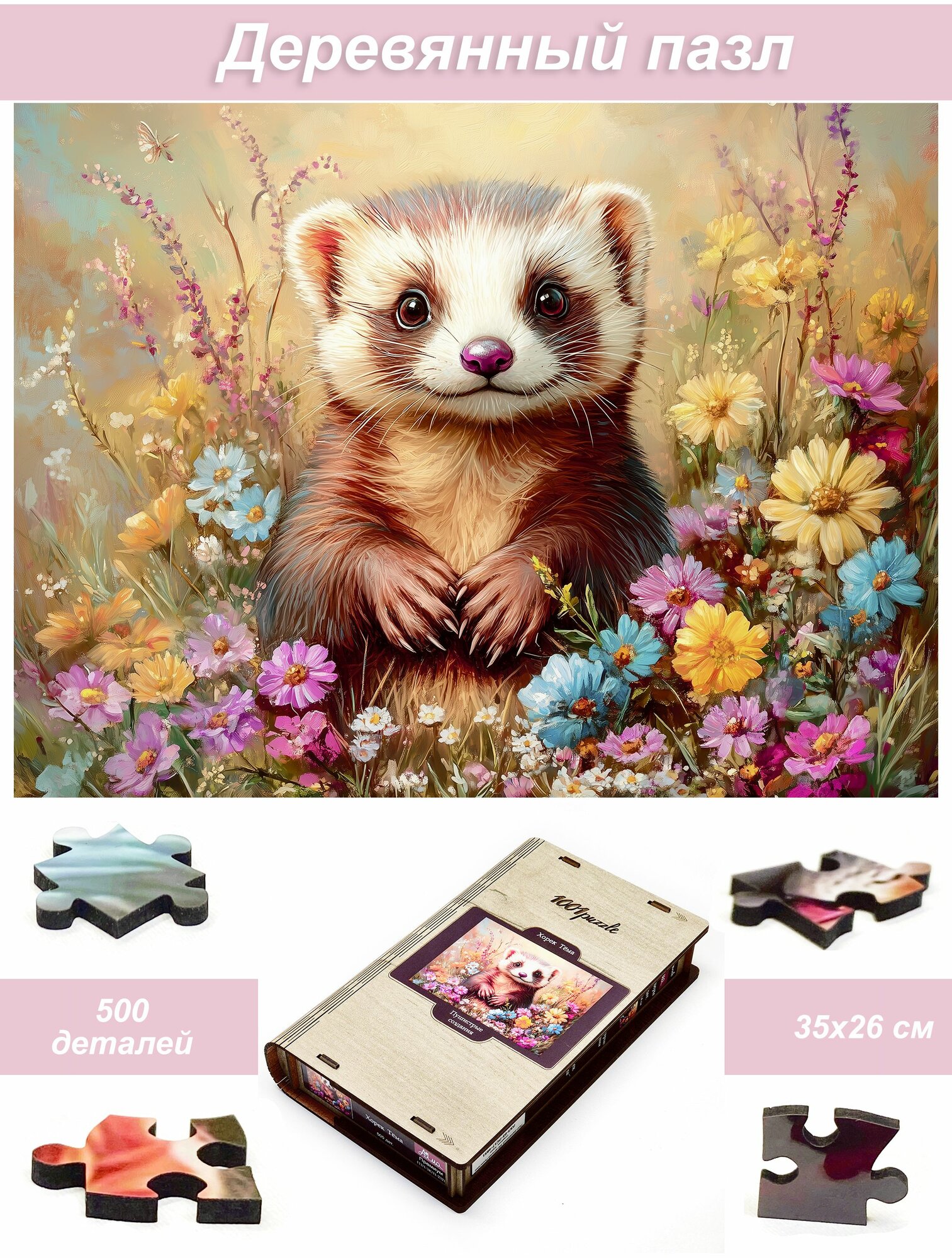 Купить Пазл деревянный для взрослых Алма 500 деталей: Пушистые создания. Хорек