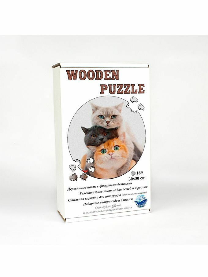 СохранитьДеревянный пазл картина на стену Три Котика 169 деталей 30х30 интересное: