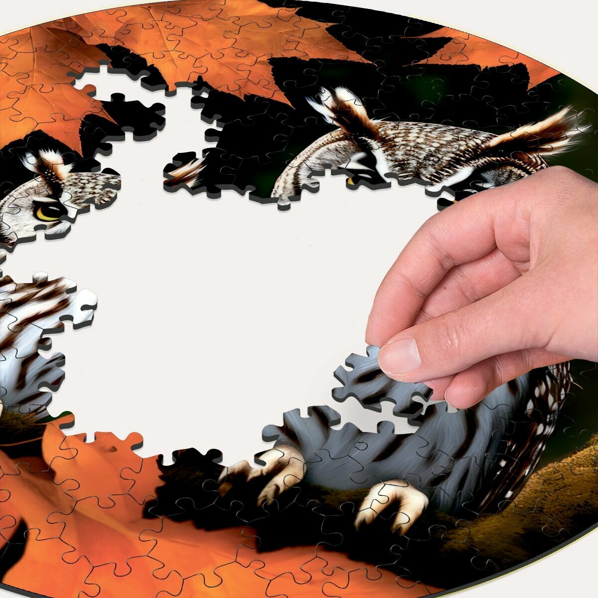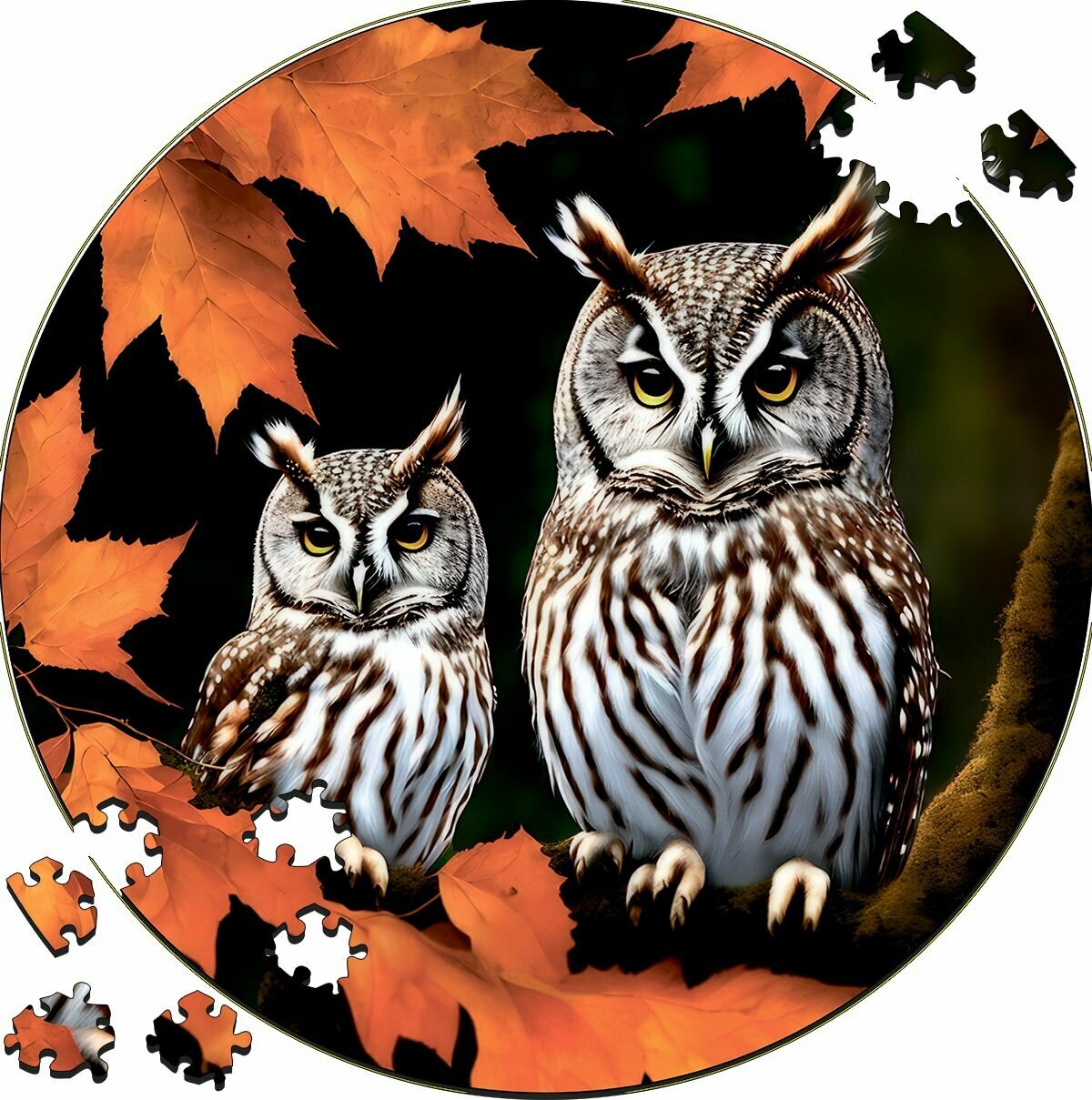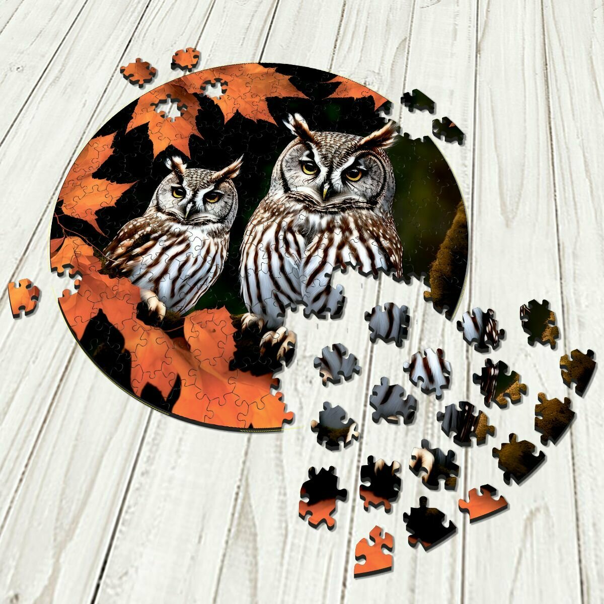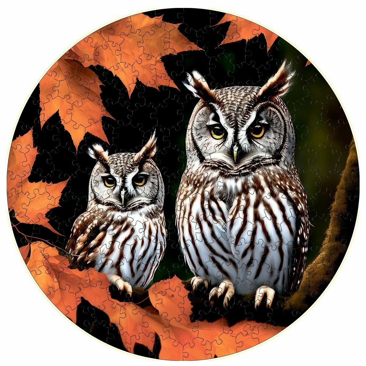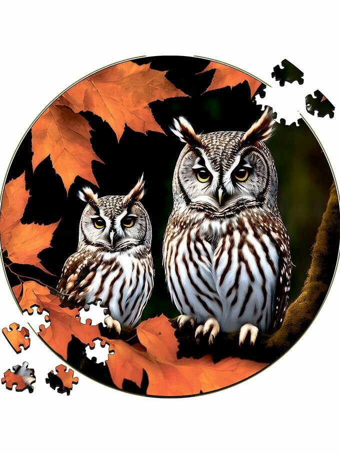 Купить Деревянный пазл картина на стену Осенние совы 169 деталей 30х30см с системой приклейки