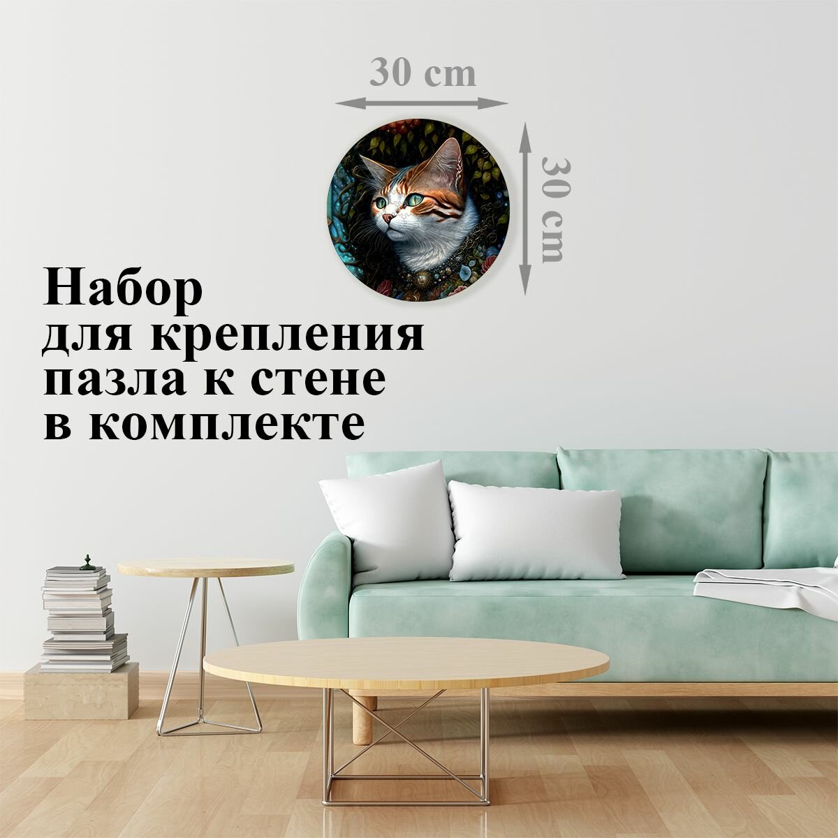 Купить Деревянный пазл картина на стену Кот в бусах 169 деталей 30х30см с системой приклейки