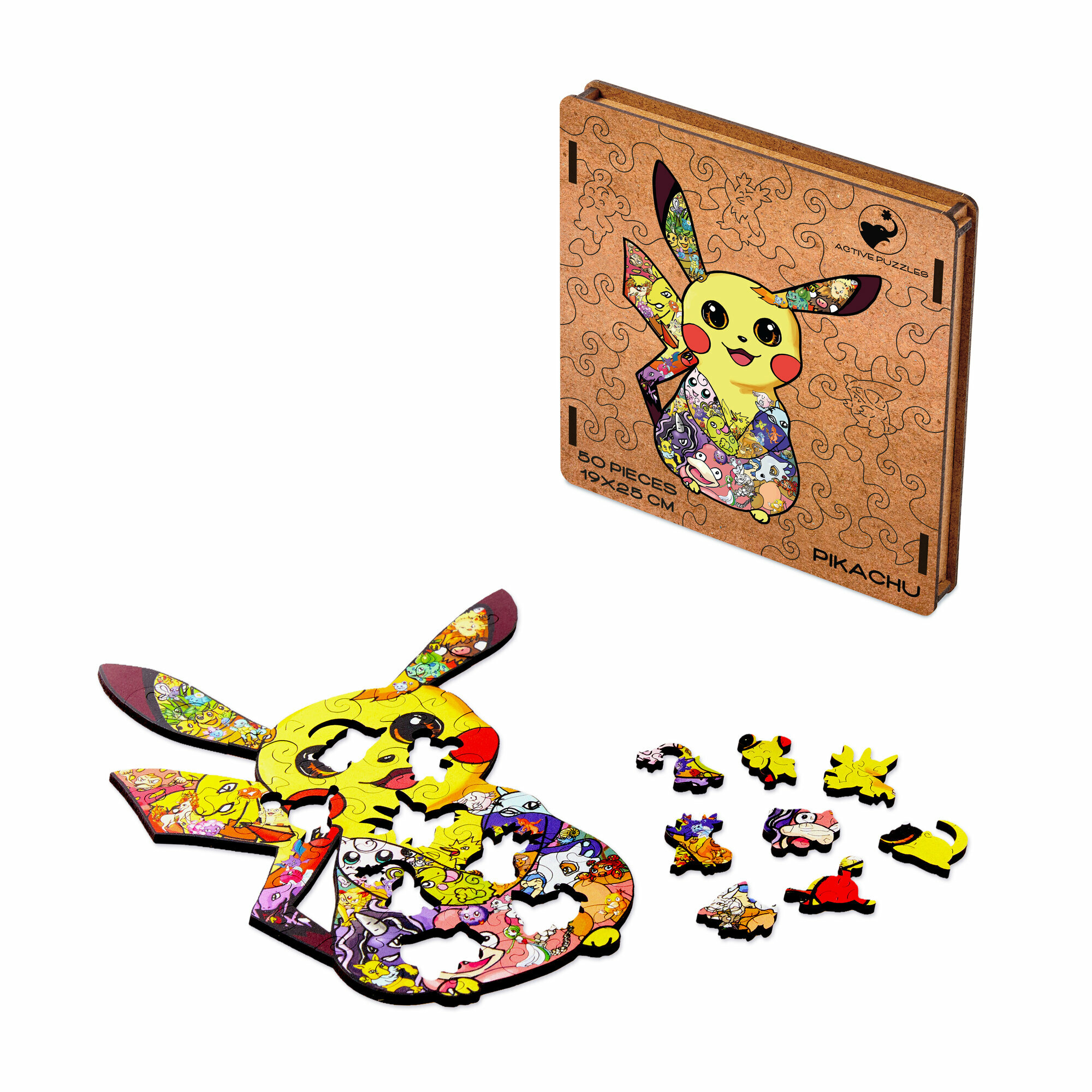 Купить Деревянный пазл для детей и взрослых / Пикачу(мини)/подарочный набор/игра-головоломка