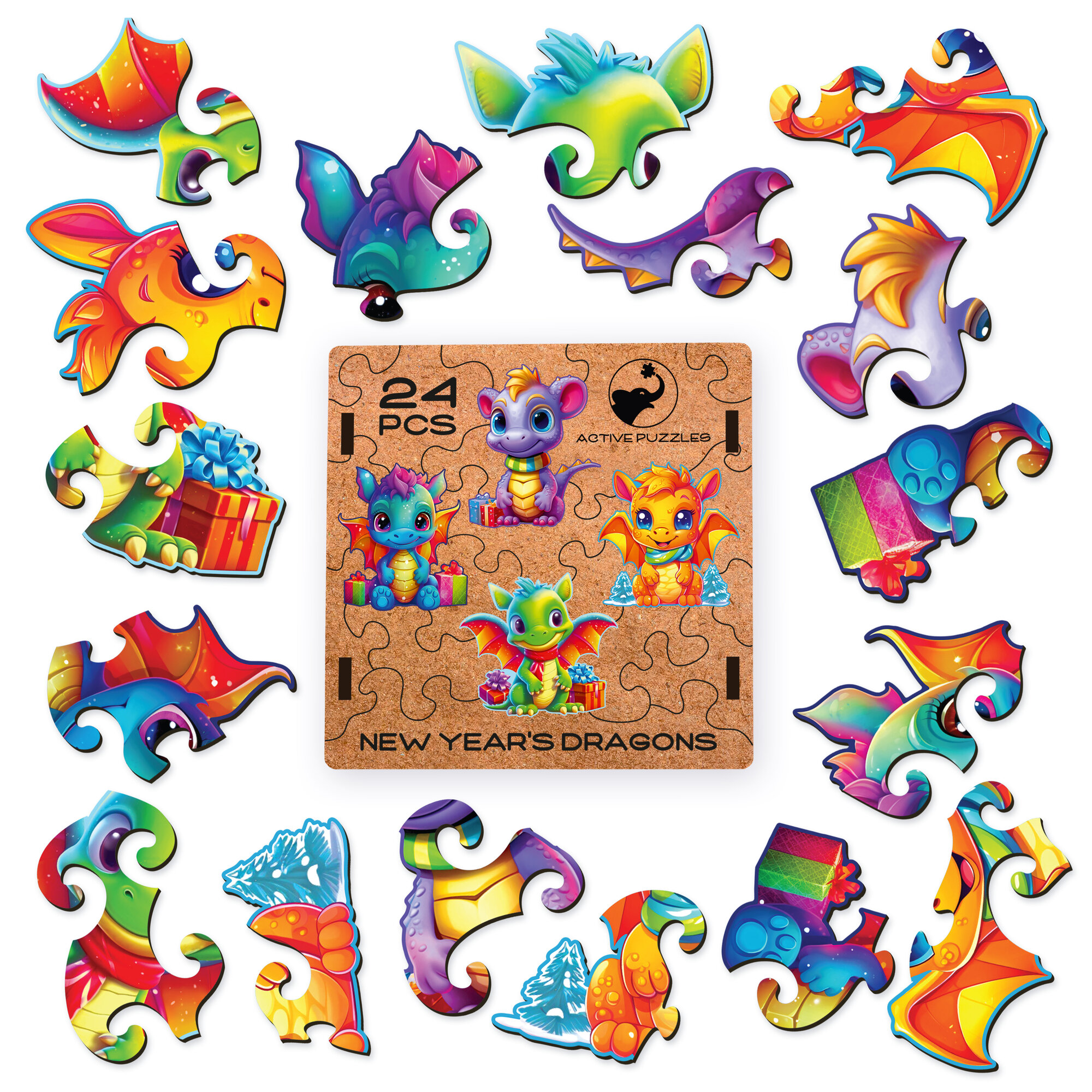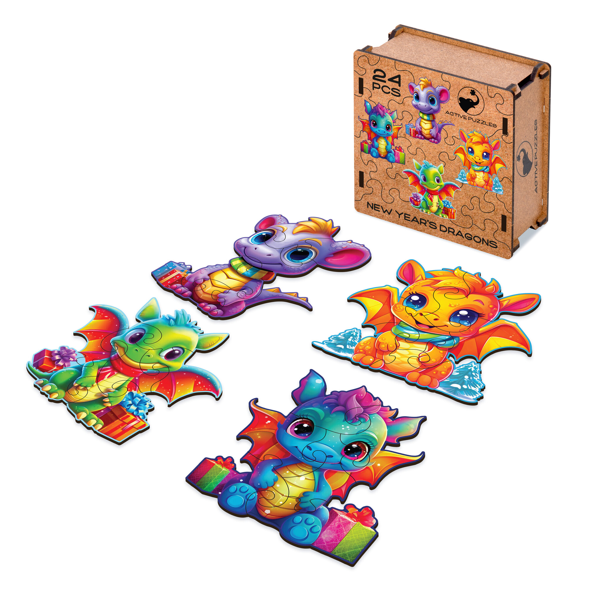 Купить Деревянные пазлы для взрослых и детей/Новогодние дракончики/подарочный набор/игра