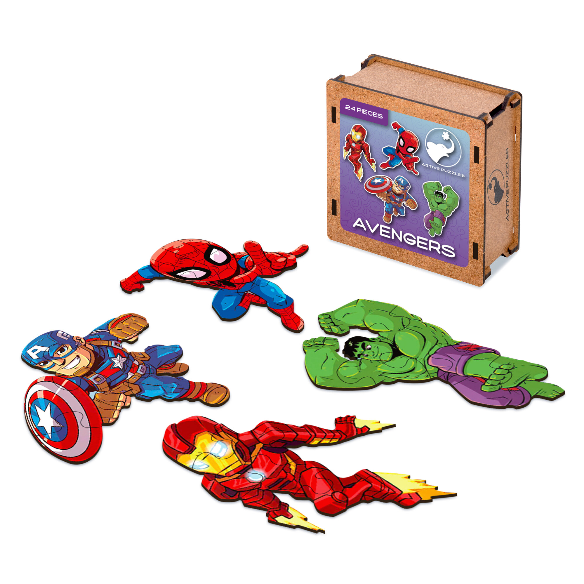 Купить Деревянные пазлы для детей и малышей/Мстители 4 в 1/подарочный набор/головоломка
