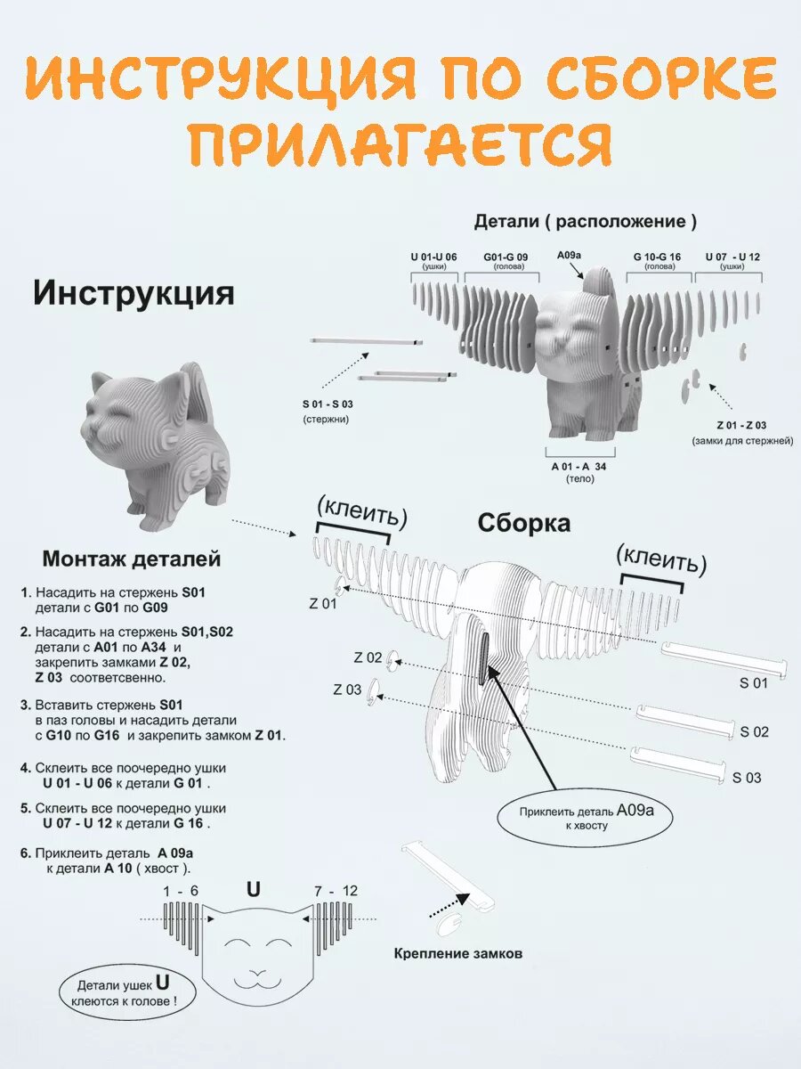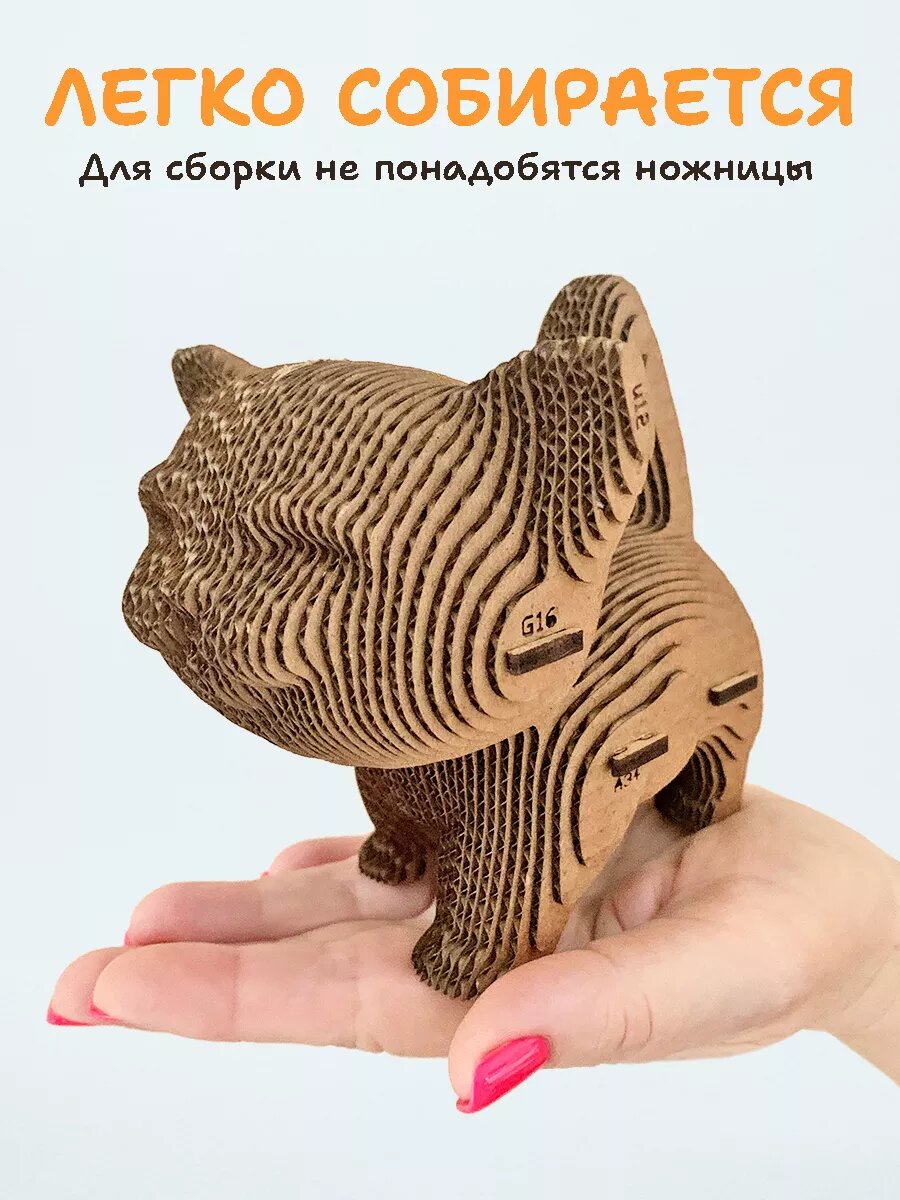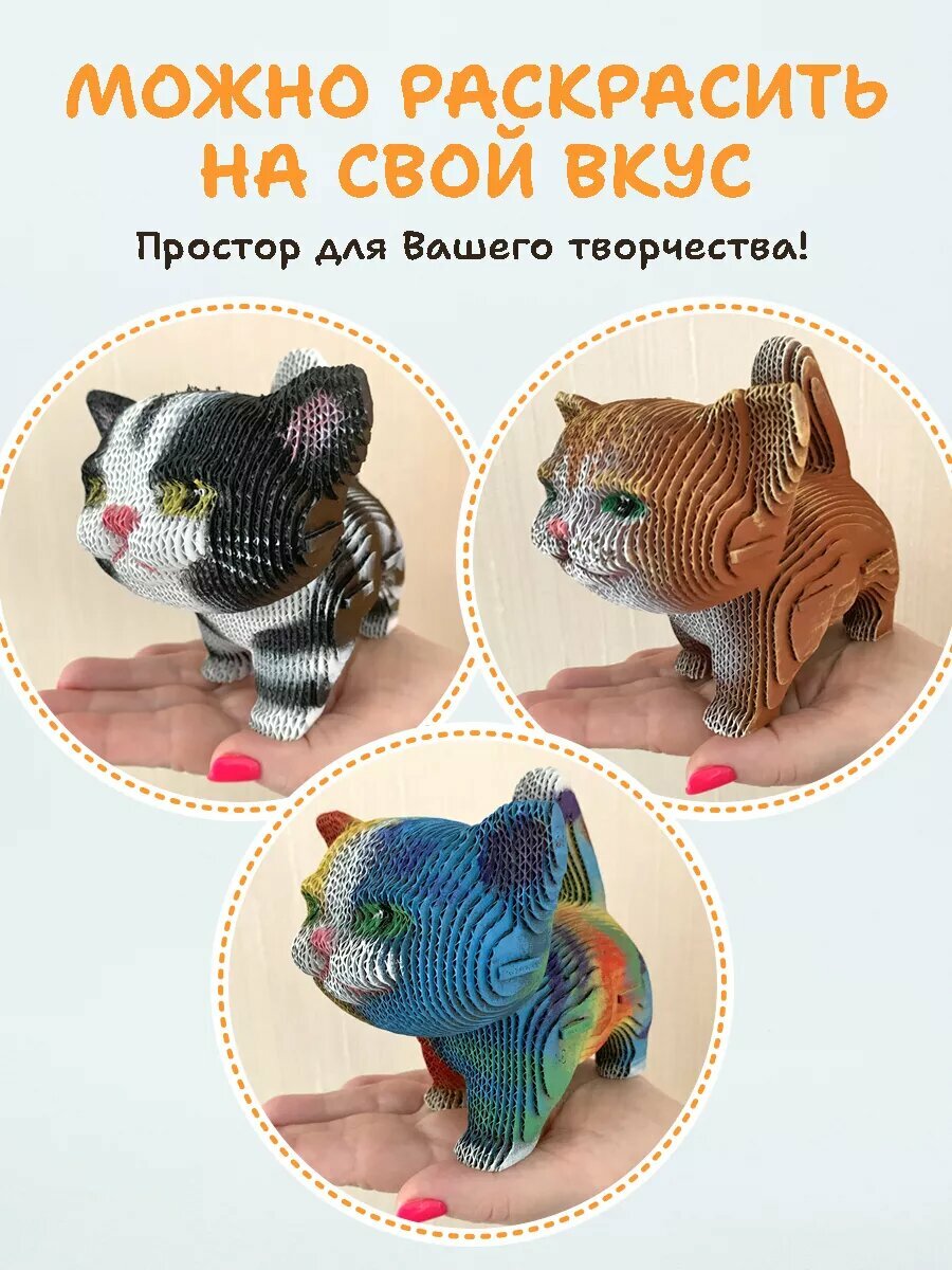 Купить Картонный 3д конструктор "Котик", 11,5 см, пазл для детей, 69 деталей, АБ Сувениры