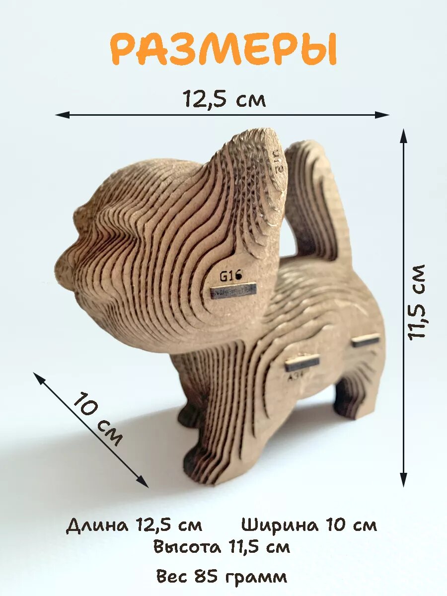 Картонный 3д конструктор "Котик", 11,5 см, пазл для детей, 69 деталей, АБ Сувениры интересное: