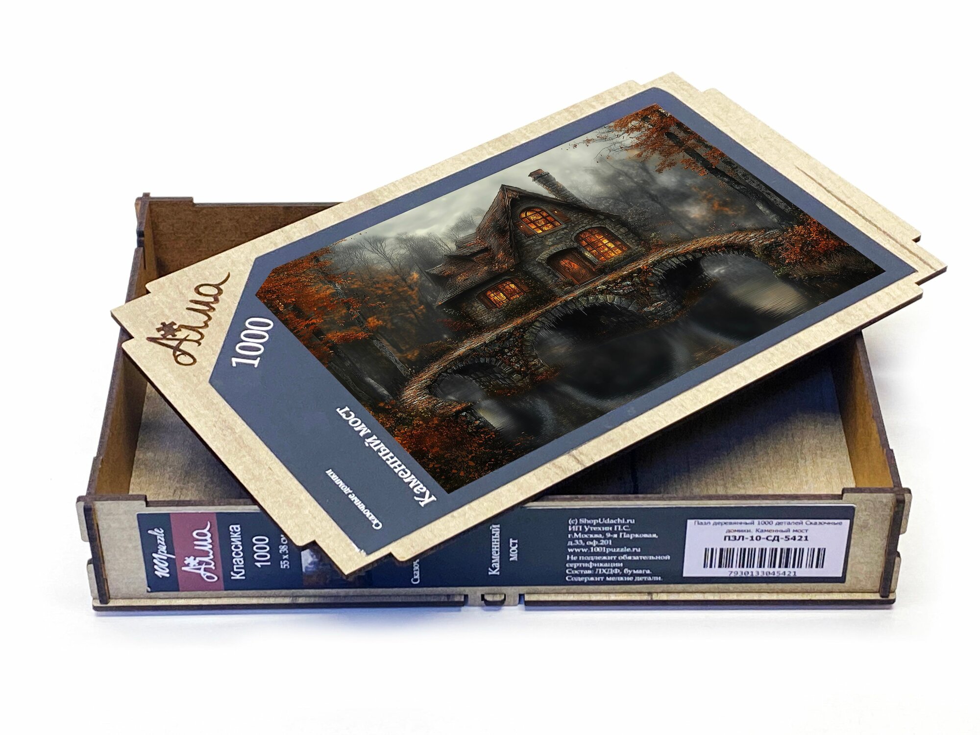 Купить Пазл деревянный для взрослых Алма 1000 деталей: Сказочные домики. Каменный мост