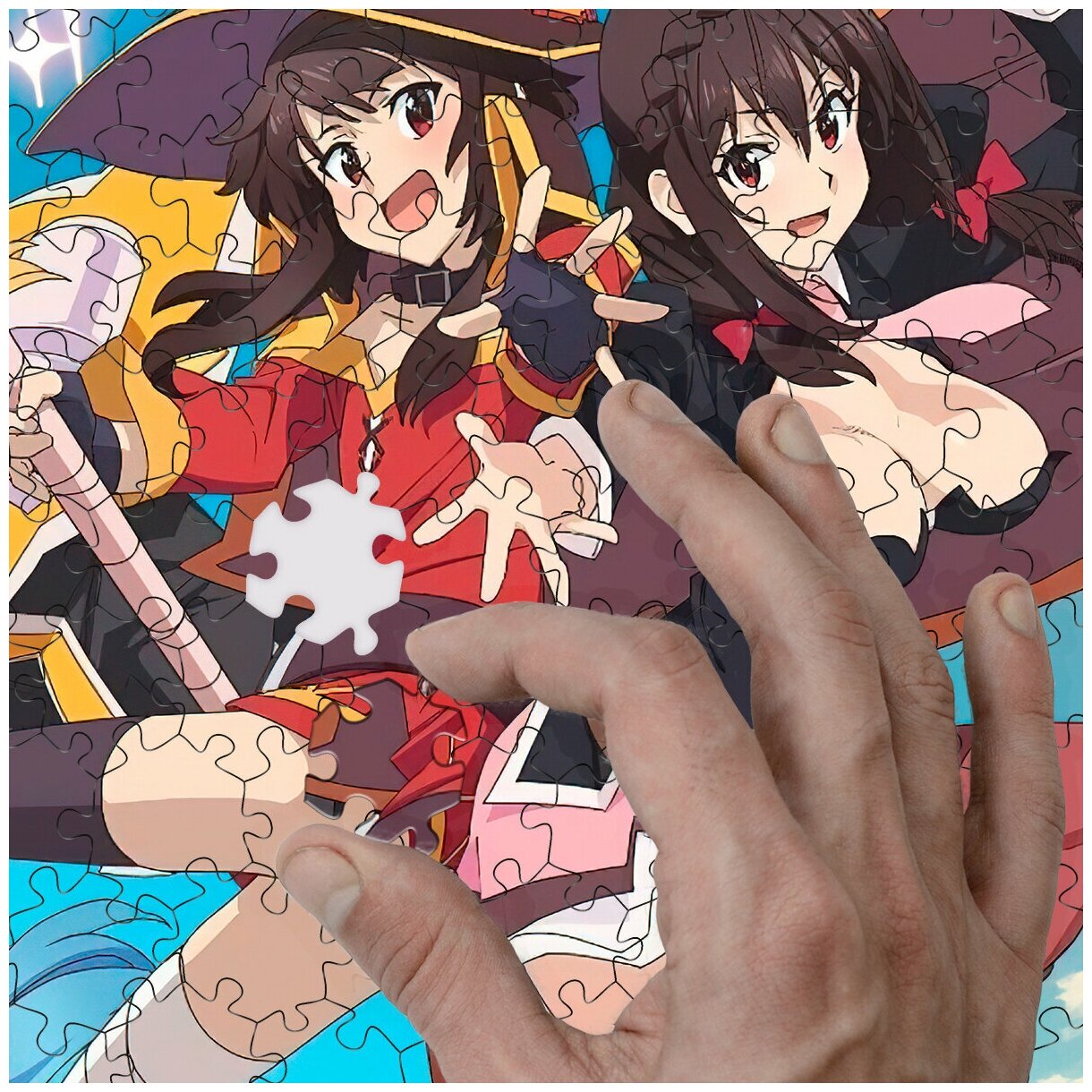 Купить Деревянный пазл - картина на стену Манга Аниме Богиня благословляет этот прекрасный мир The goddess blesses this beautiful world 30х30см 169 деталей