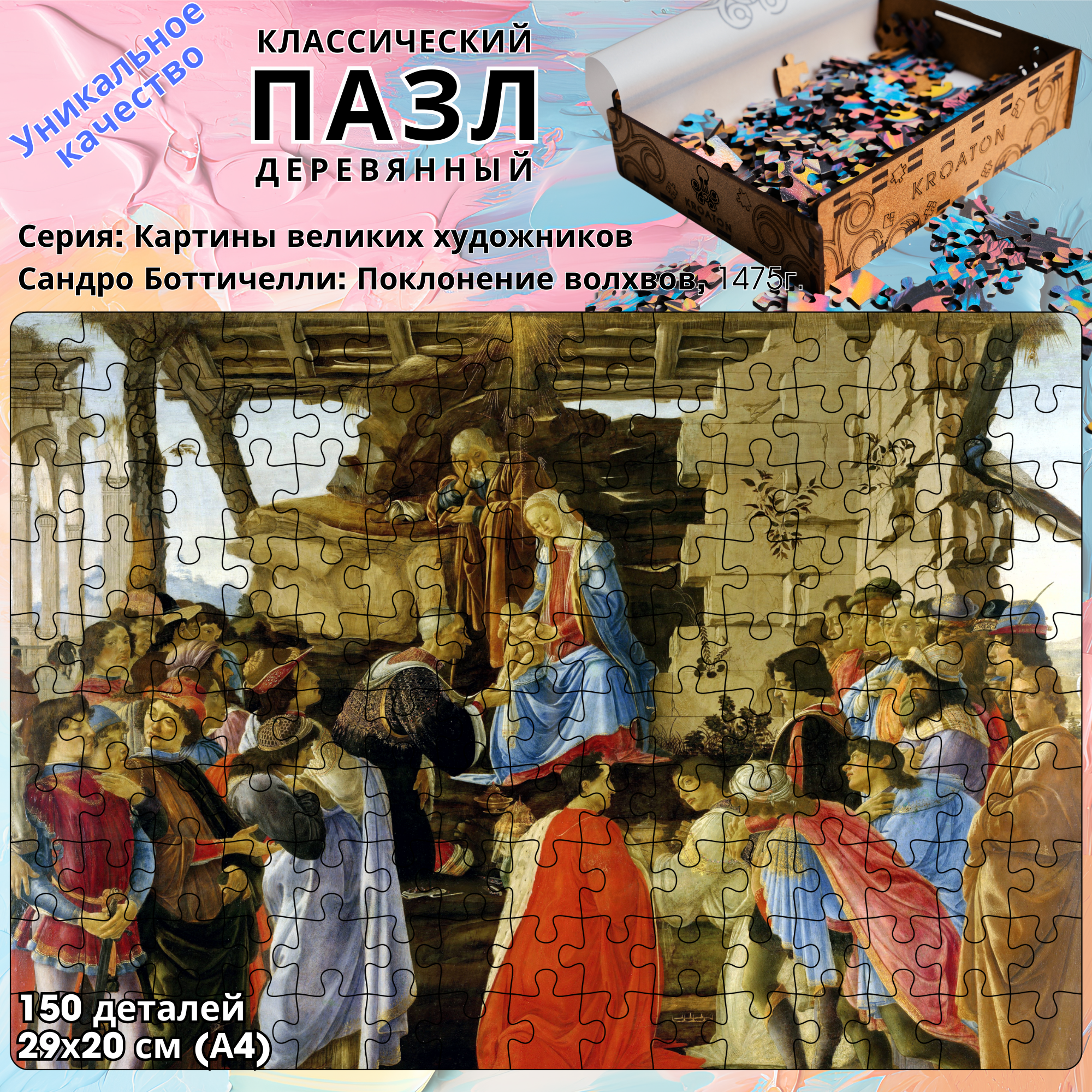 Купить Деревянный классический пазл Kroaton Сандро Боттичелли Поклонение волхвов 150 деталей 29*20 см