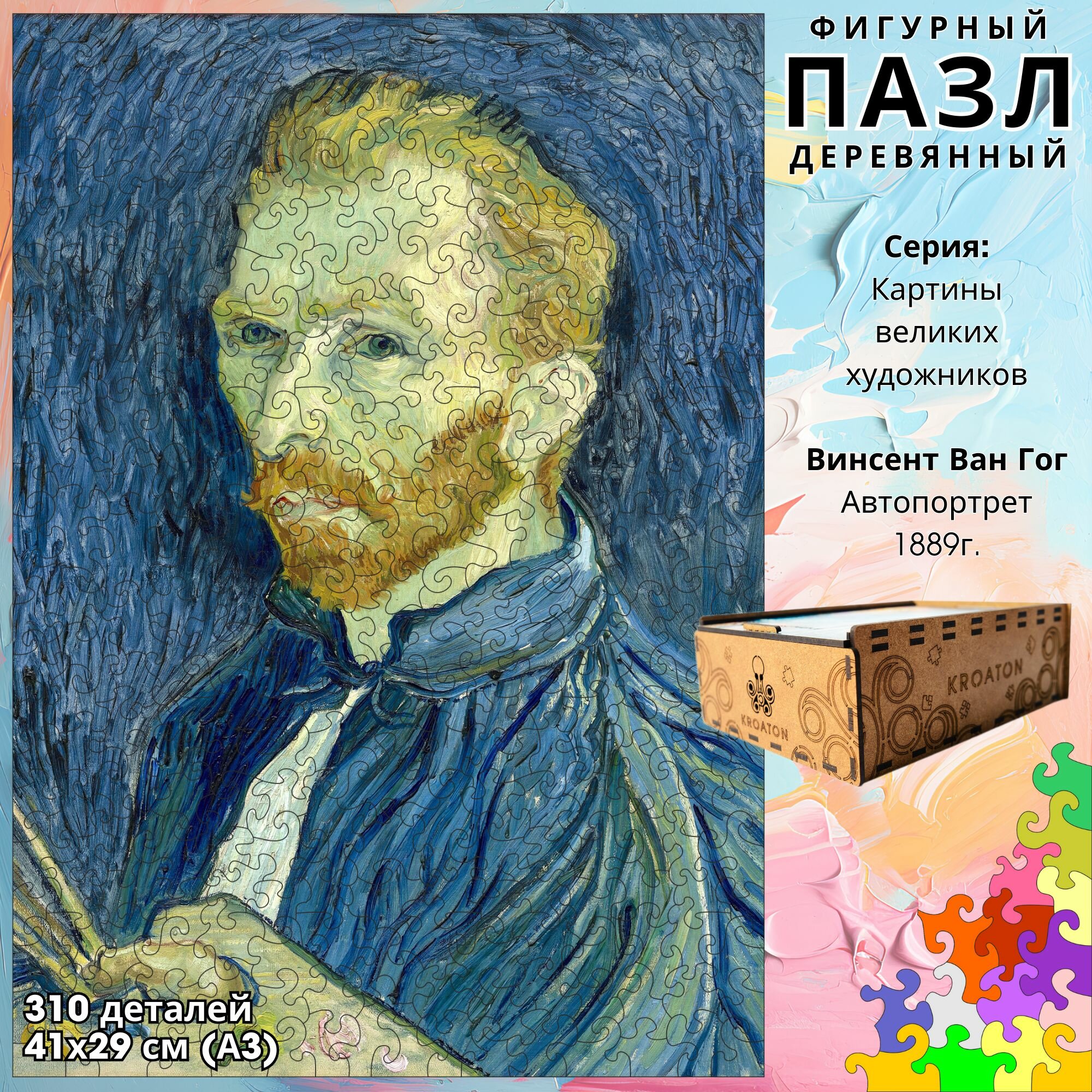 СохранитьДеревянный фигурный пазл Kroaton Ван Гог Автопортрет 305 деталей 41*29 см интересное: