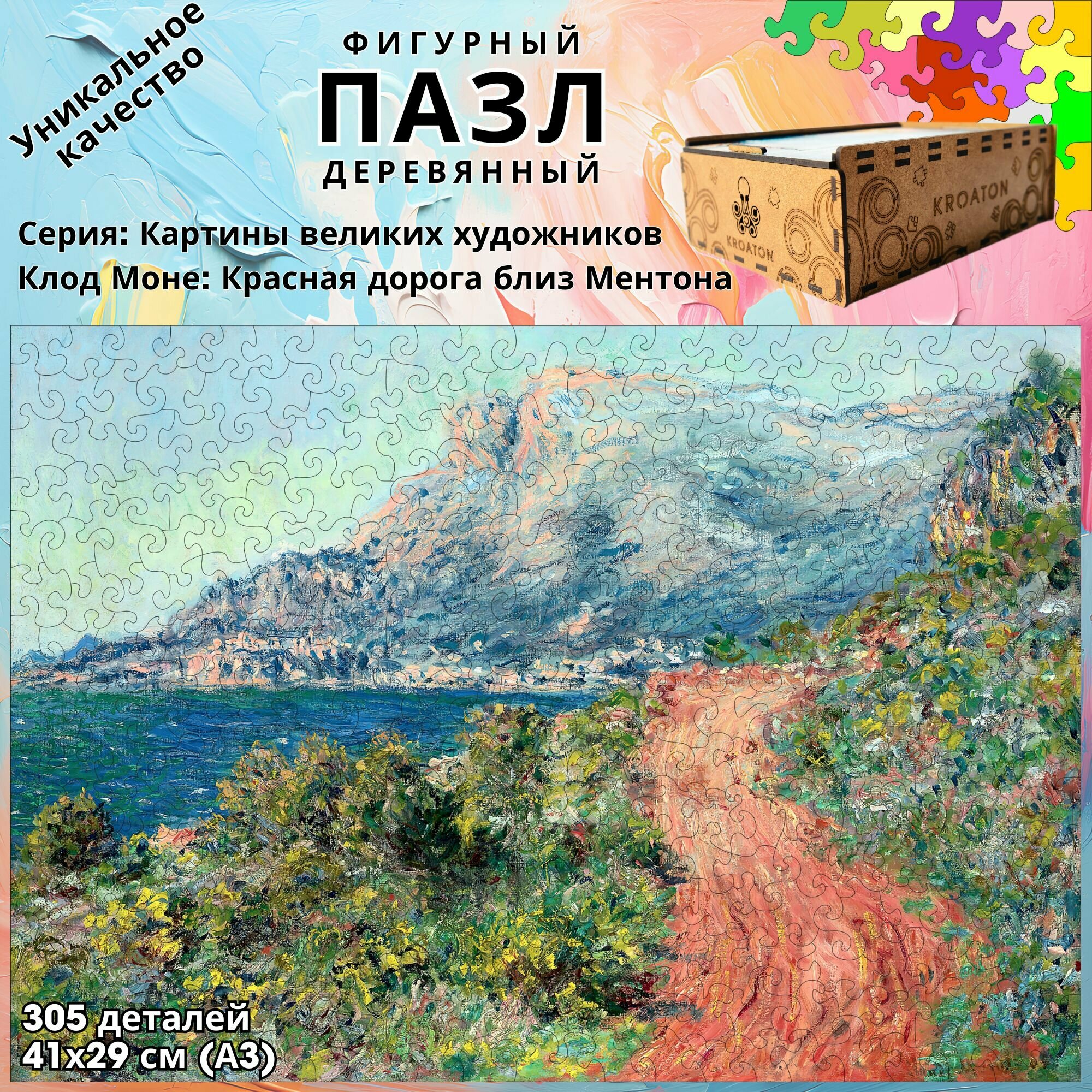 СохранитьДеревянный фигурный пазл Kroaton Клод Моне Красная дорога близ Ментона 305 деталей 41*29 см интересное: