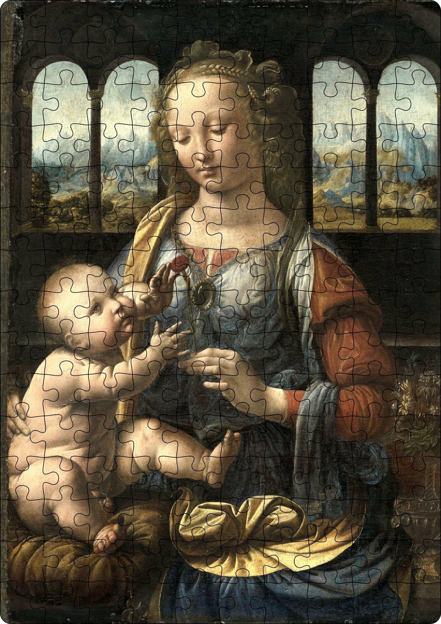 Купить Деревянный классический пазл Kroaton Леонардо да Винчи Мадонна с гвоздикой 150 деталей 29*20 см