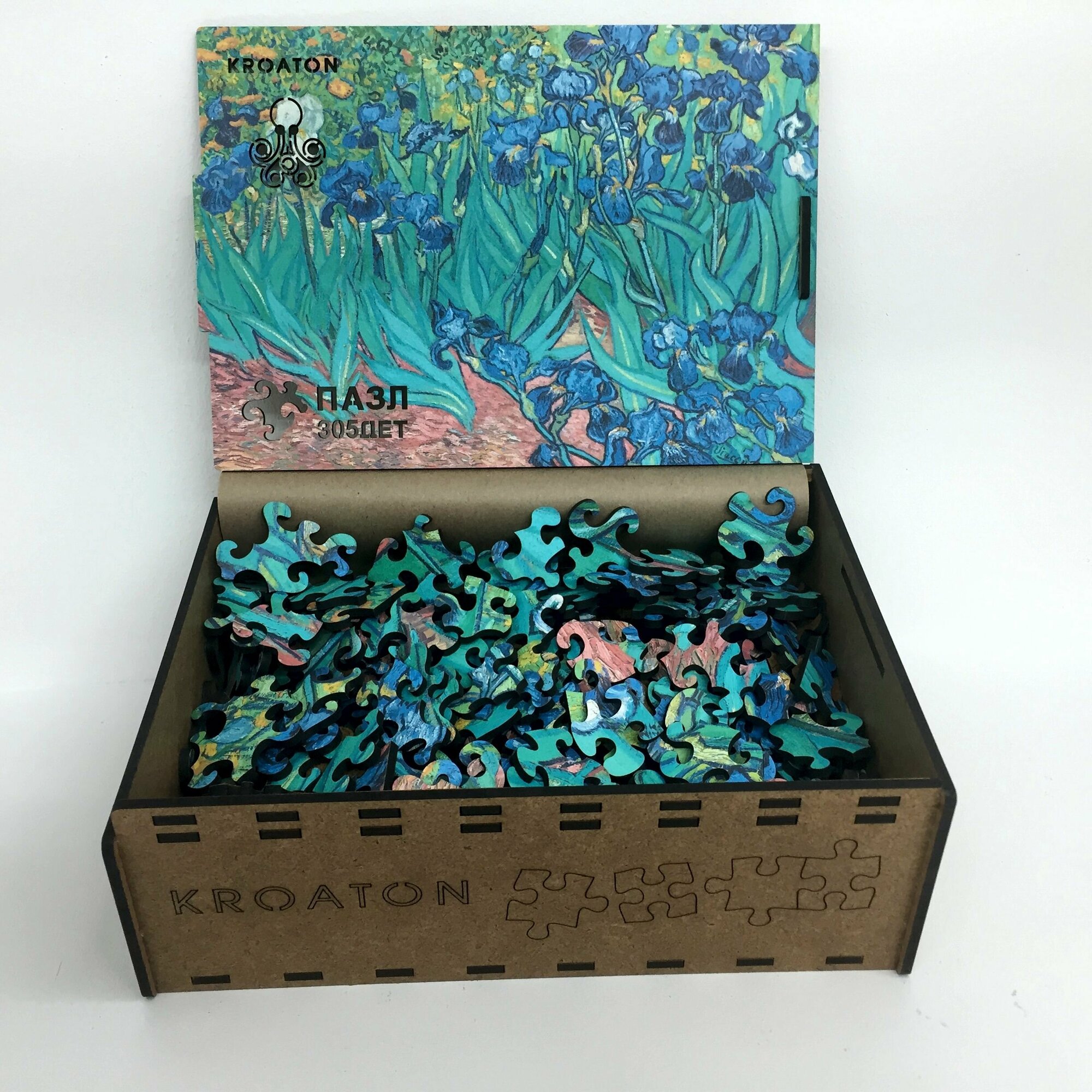 Купить Деревянный фигурный пазл Kroaton Ван Гон Ирисы 305 деталей 41*29 см
