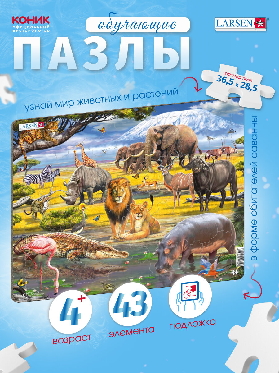 Пазл Larsen FH30 "Мир саванны", контурный, 43 детали, мультиколлор интересное: