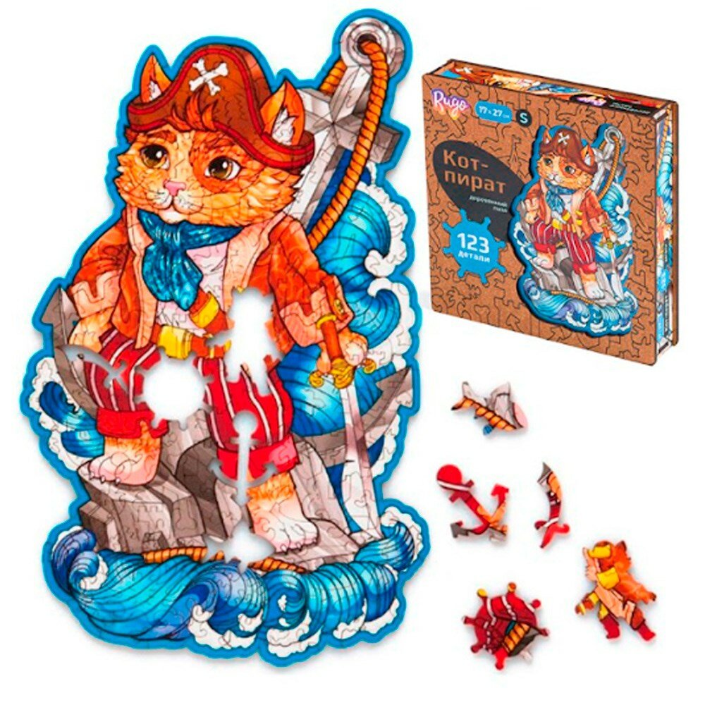 Деревянные пазлы для взрослых и для детей Rugo Кот Пират 17х27 см, 123 детали в виде животных и растений интересное: