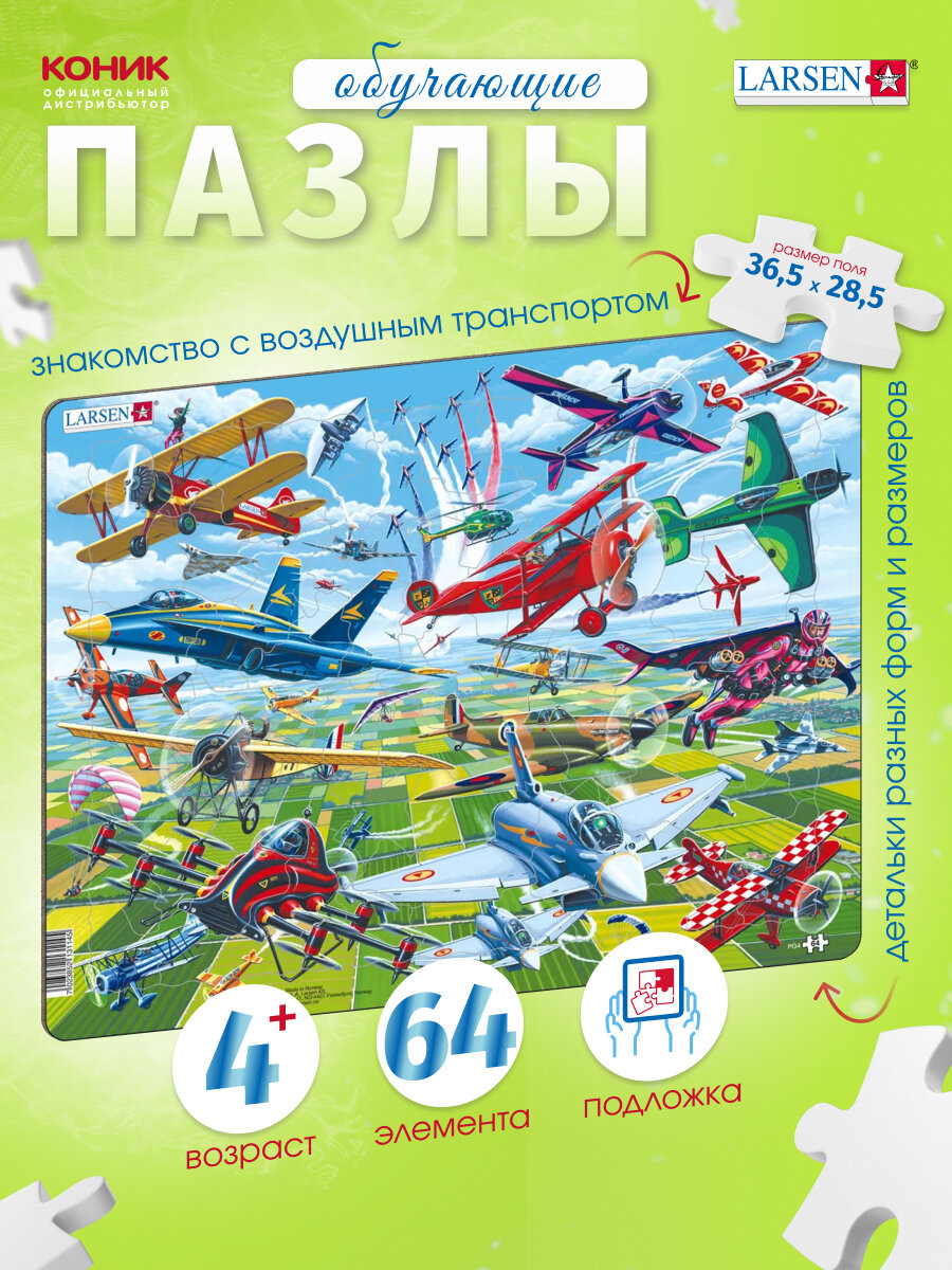 Купить Пазлы Larsen "Самолёты", контурные, 64 детали, картон, для детей