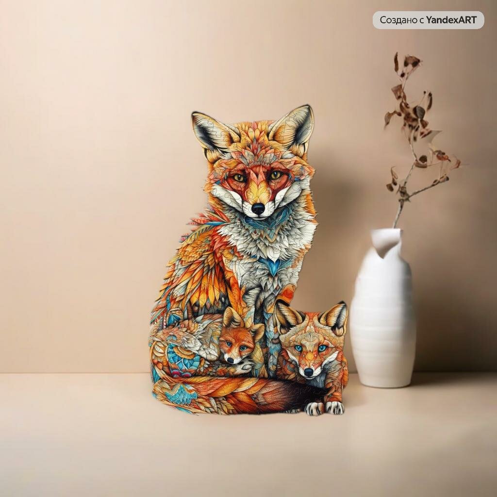 Купить Деревянный пазл Woodbests "Лисья семья", 3D, дерево, 600 элементов